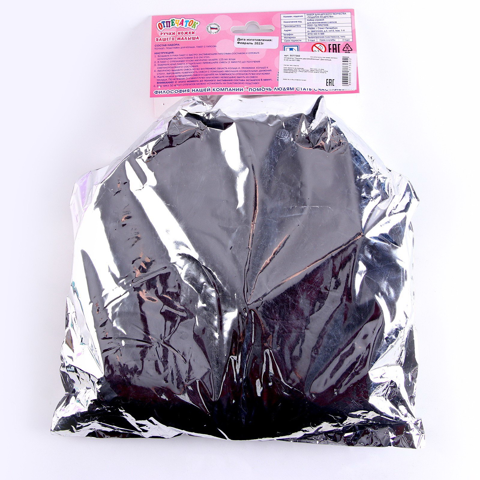 Возраст: Для взрослых, От 0 месяцев Размер упаковки: 23 x 3.5 x 23 см. Вид итогового изделия: Отпечаток Вид итогового изделия: Отпечаток tnved: 9503007000 Адресат: Любимой/Любимому Вид упаковки: Пакет Вид слепка: С гипсом/массой Особенности: С рамкой В наборе, шт.: 3 Тематика подарка: Творчество и хобби Составляющие набора: Товары для творчества Тематика праздника: Рождение ребёнка Температурное ограничение: Нет Материал для лепки: Гипс Для кого: Унисекс Отпечаток от ТМ "Престиж" это креативный набор для взрослых, который позволяет создать уникальный сувенир своими руками. Набор включает гипс и пластик, что обеспечивает долговечность и четкость отпечатка. Особенности набора