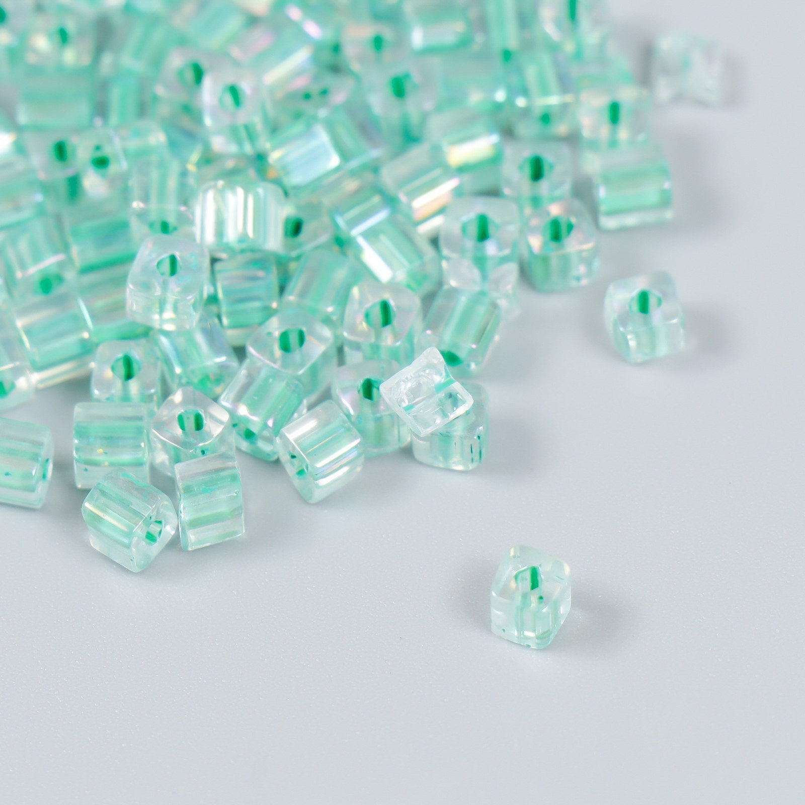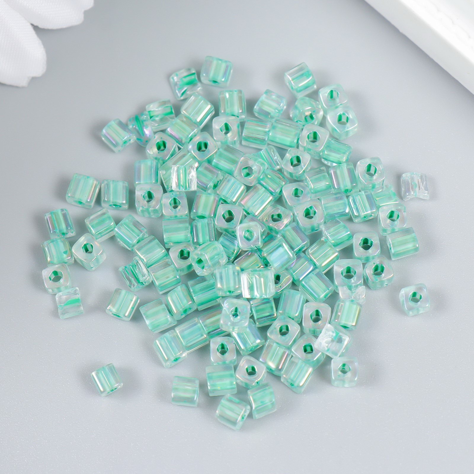 Бисер стекло 6/0 "Кубик. Полупрозрачный. Зелёный", 10 г, Китай
