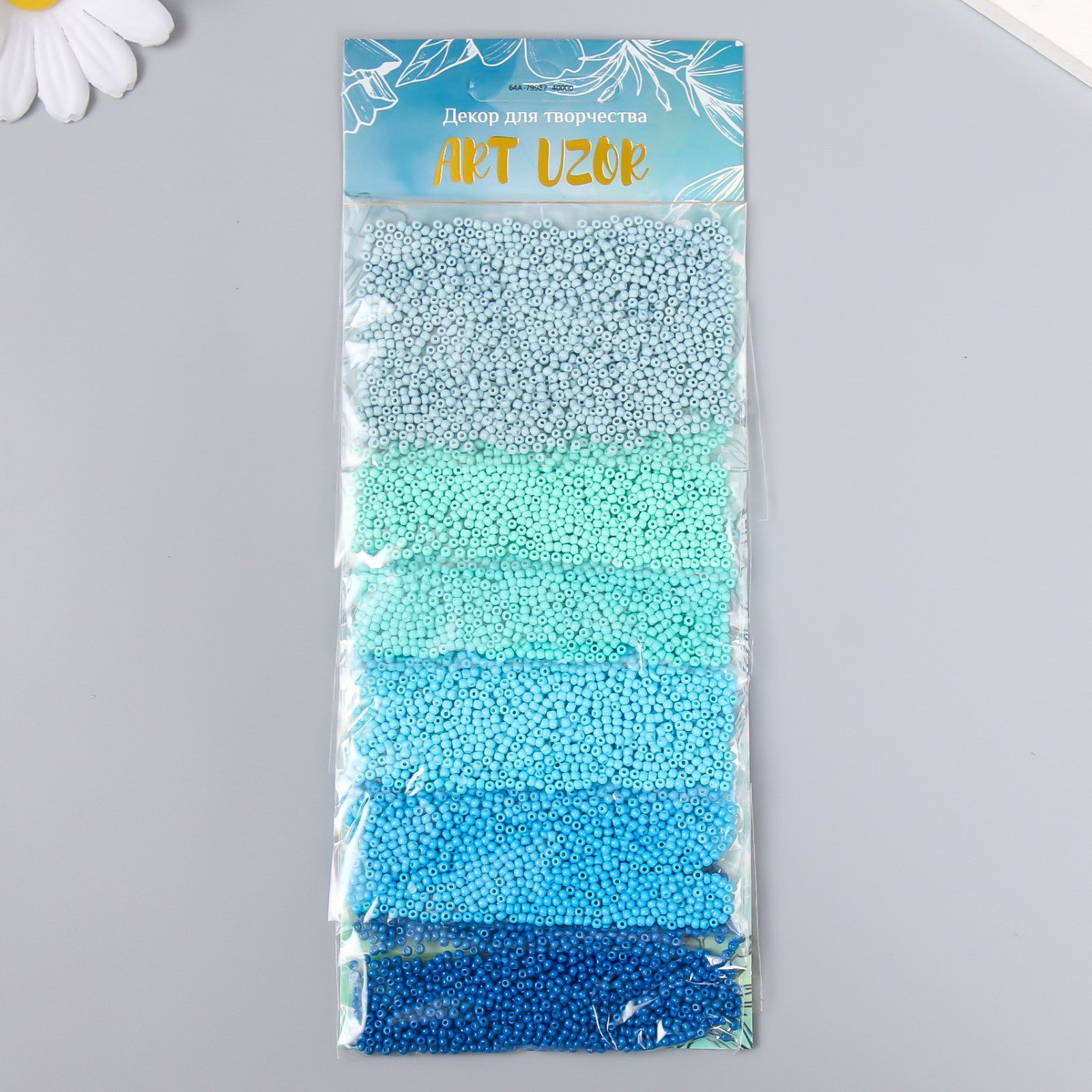 Набор бисера для плетения круглый "Арт Узор. Цвета океана", 12/0, 6 цветов x 10 г, 20x8 см, для рукоделия, 8x20 см., Арт Узор, Китай