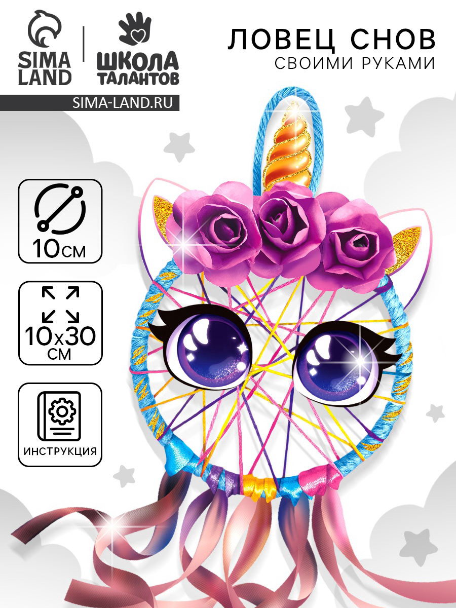 Ловец снов своими руками "Радужный единорог", набор для творчества, 10.6x16.2x2.5 см., Школа талантов, Китай