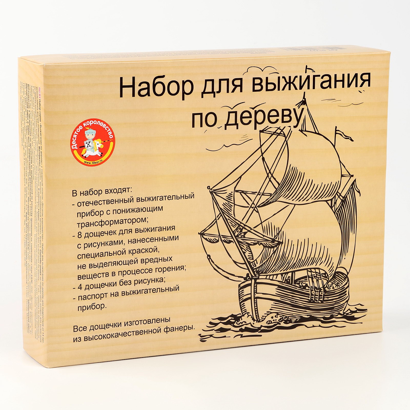 Выжигание по дереву, набор: прибор + 12 дощечек: 21.3x14.8x0.4 см, мощность: 220 В, Десятое Королевство, Россия