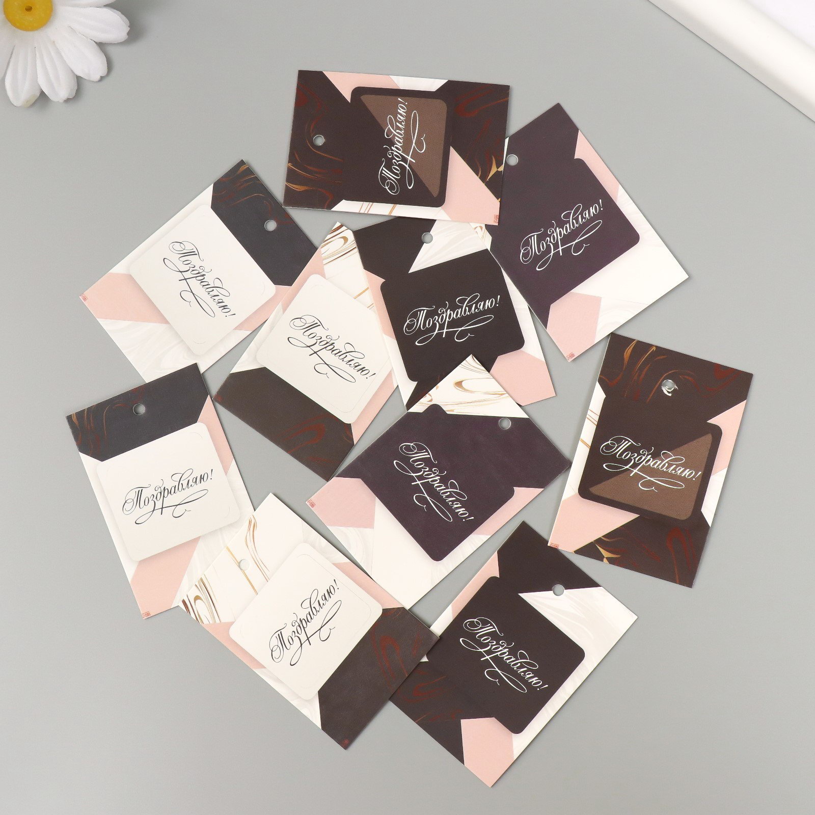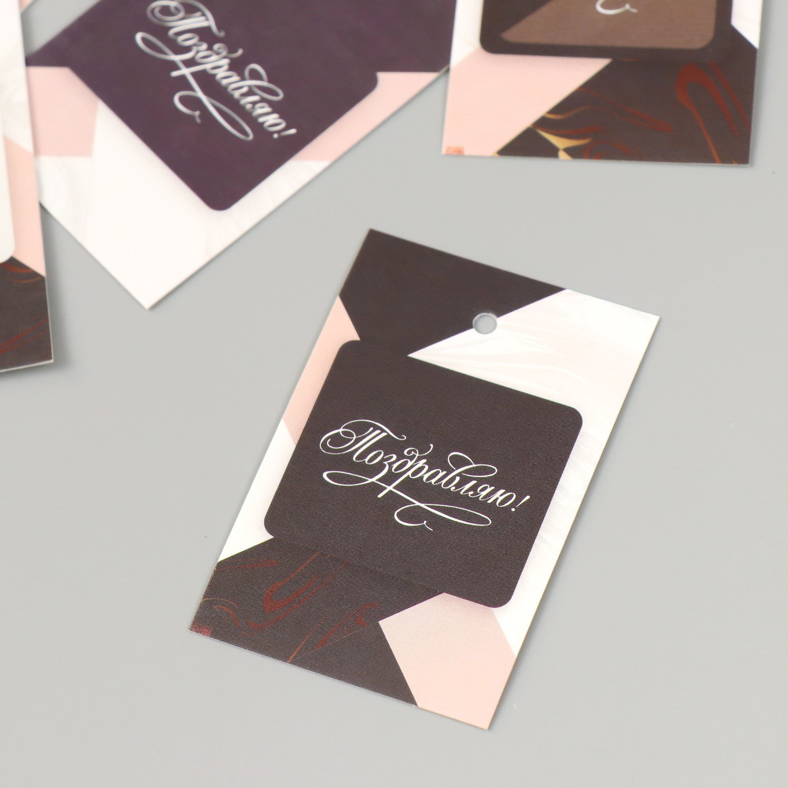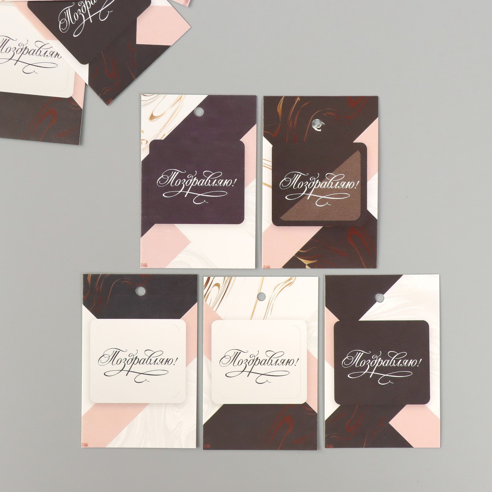 Бирка картон "Поздравляю. Мрамор" набор 10 шт, 4x6 см., Россия