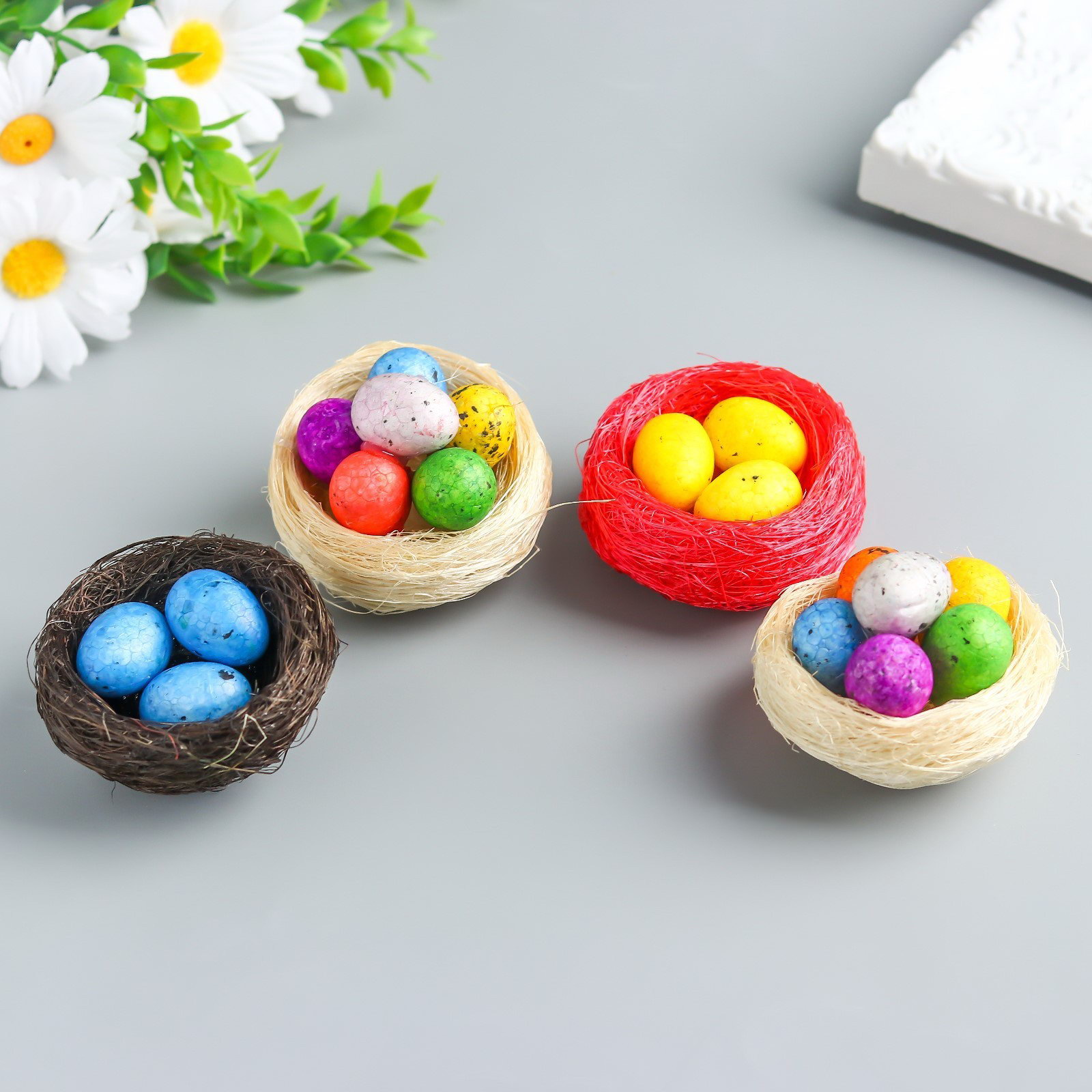 Дом Подарка › Каталог › Творчество и хобби › Принадлежности для творчества › Декор › Фигурный декор › Набор фигурок пасхальных "Яички в гнезде", 4 шт., 6x6 см, МИКС