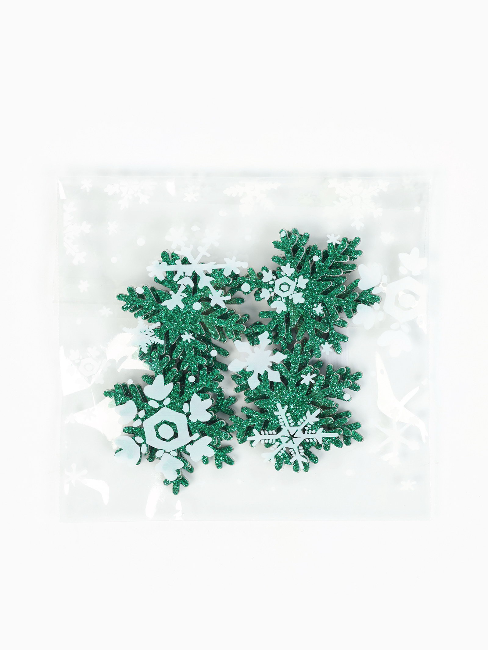 Снежинки зелёные, на клеевой основе, 3 x 3 см, Волшебная идея, Россия