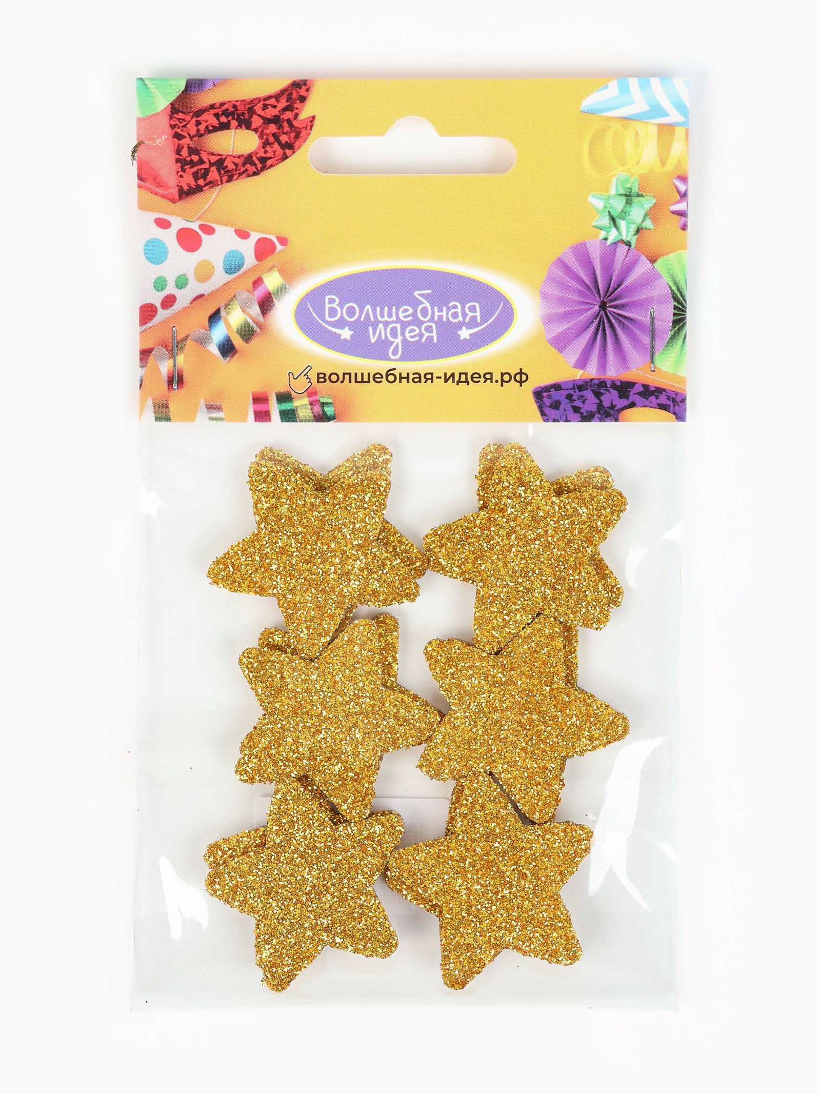 Звезды золото на клеевой основе 3 см, Волшебная идея, Россия