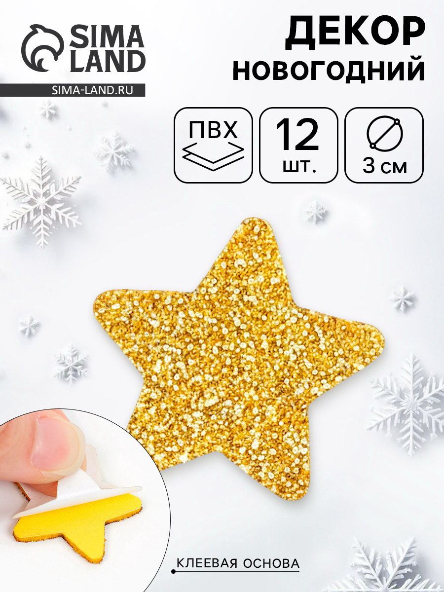Размер упаковки: 10 x 0.5 x 12 см. tnved: 9505900000 Тематика праздника: Новый год Цвет: Золотистый Вид декора: Звёзды Добавьте блеска и праздничного настроения вашим поделкам с набором золотых звездочек. Эти декоративные элементы идеально подходят для скрапбукинга, создания новогодних открыток, украшения подарков и других творческих проектов. Особенности: