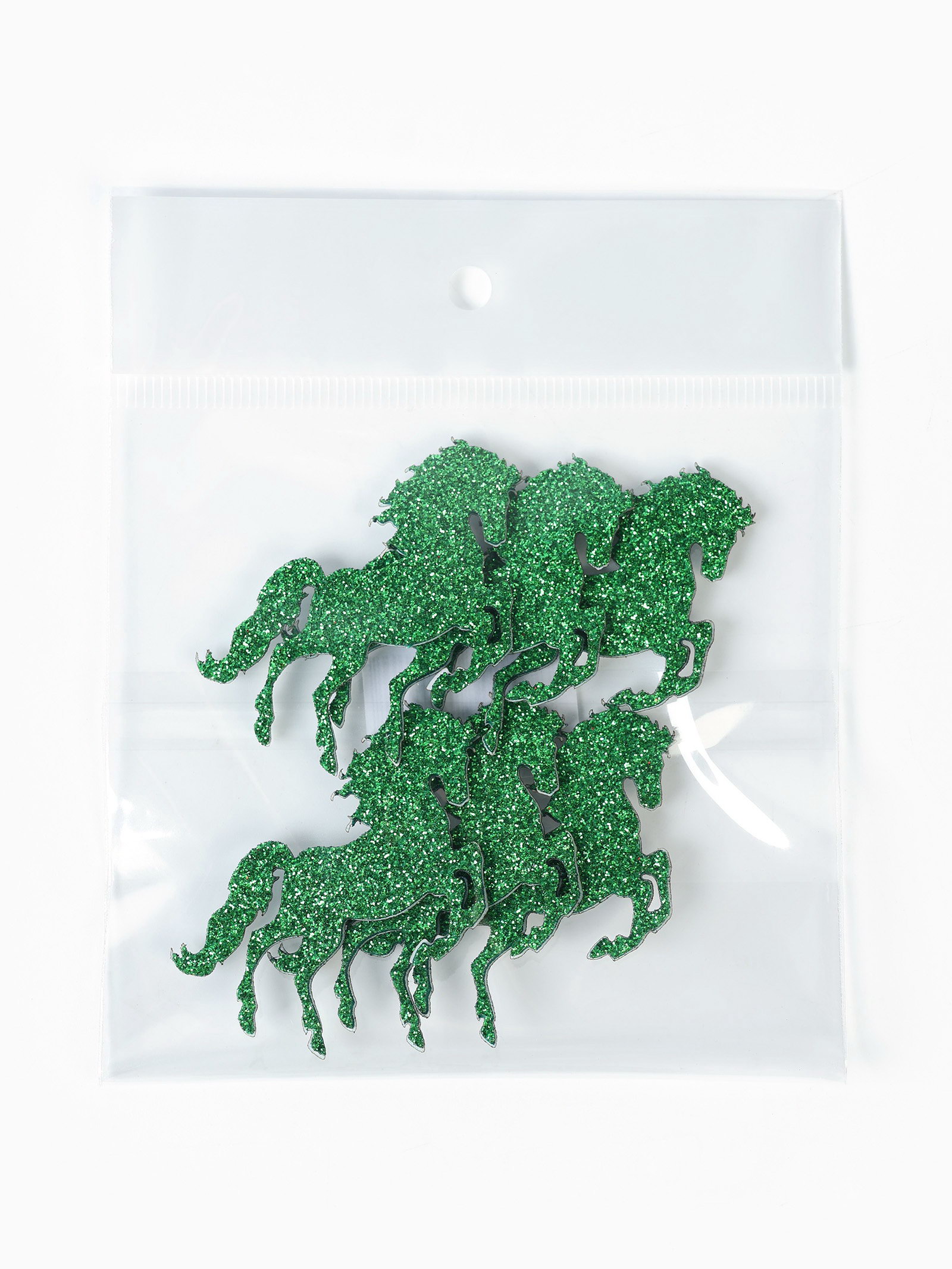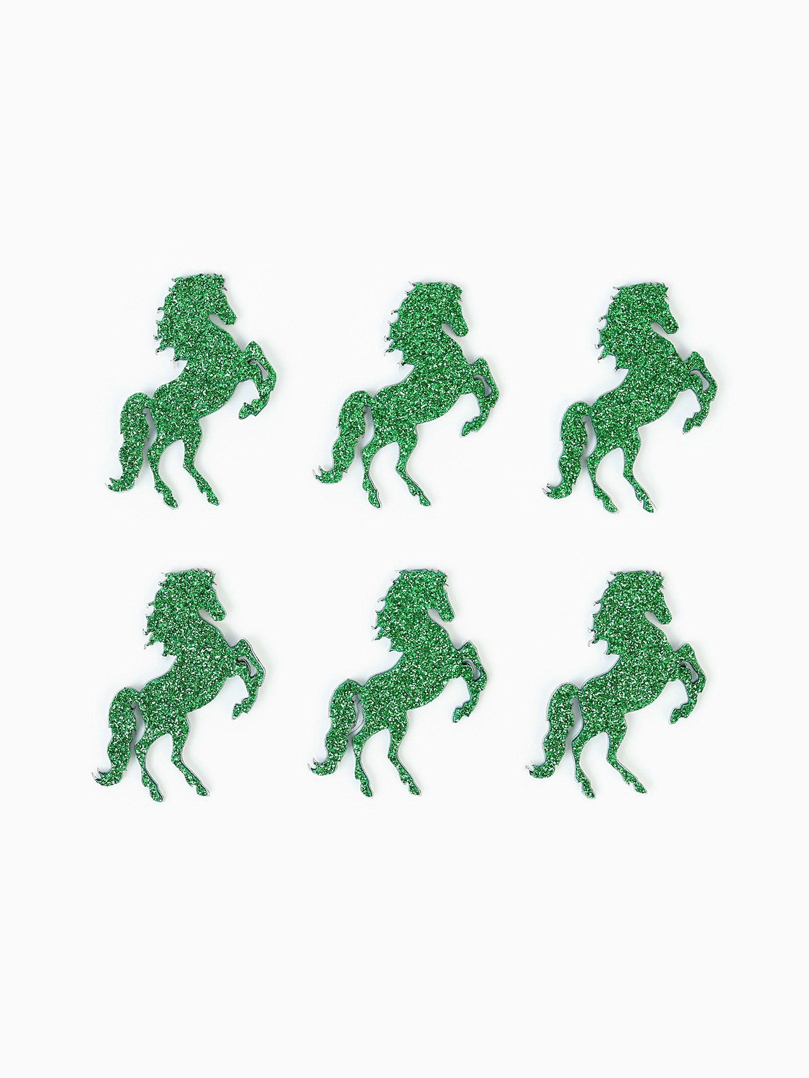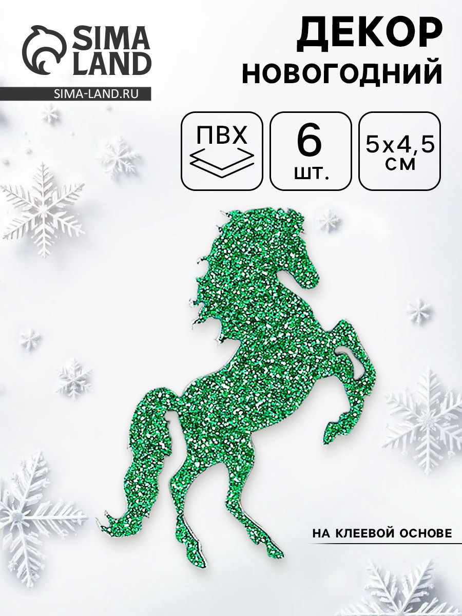 Декор новогодний "Лошадки" на клеевой основе, зеленый, набор 6 шт., Волшебная идея, Россия
