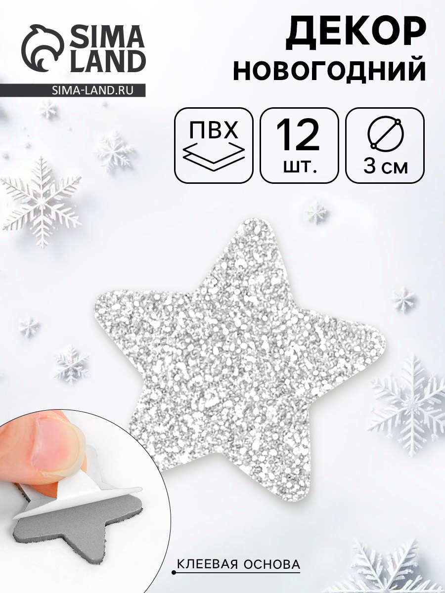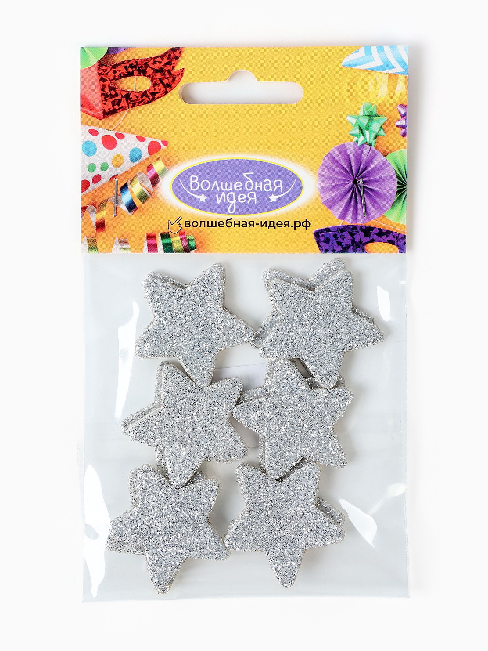 Декор "Звезды" на клеевой основе, серебро 3 см, Волшебная идея, Россия