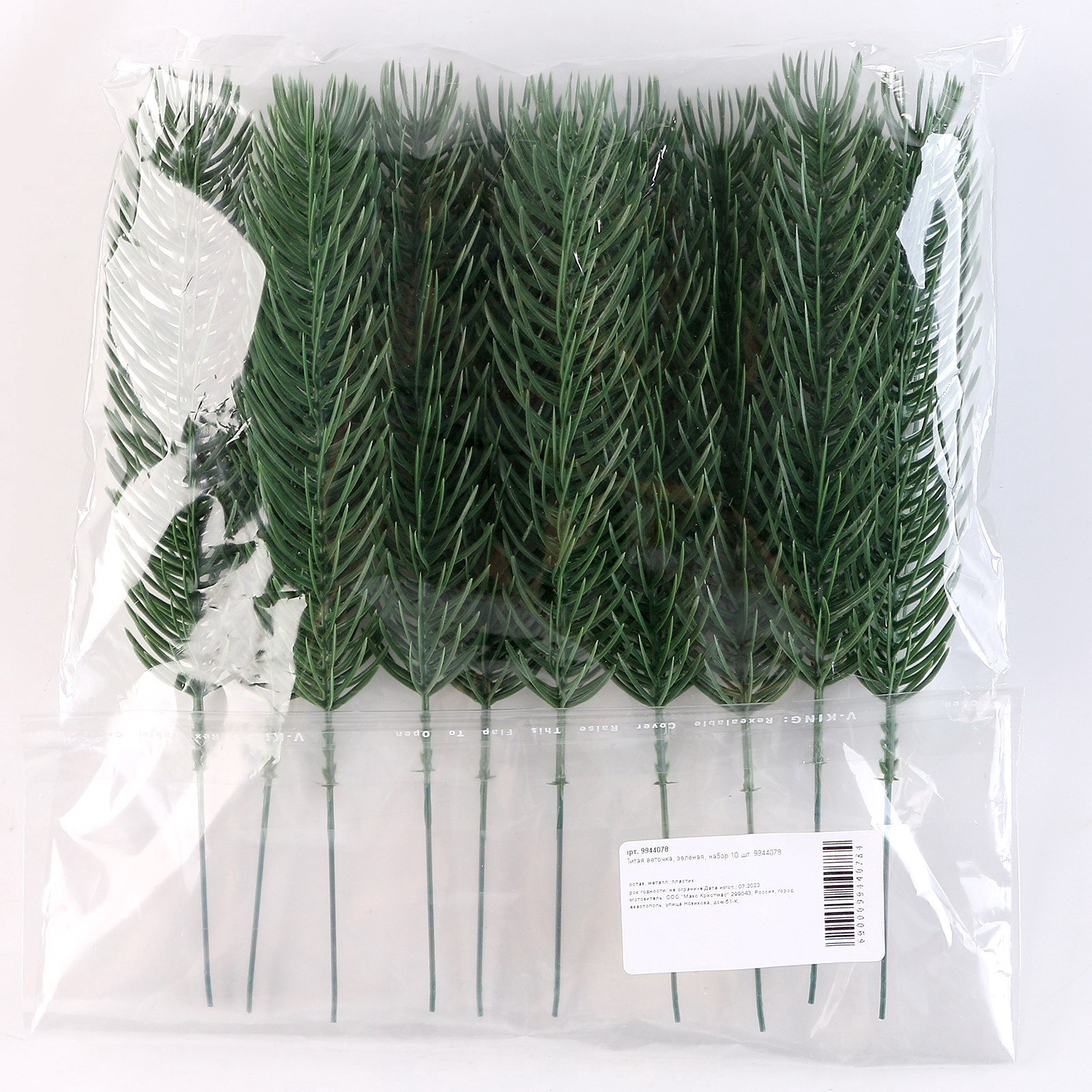 Ветка еловая зелёная, набор 10 шт., 4x21 см., Россия