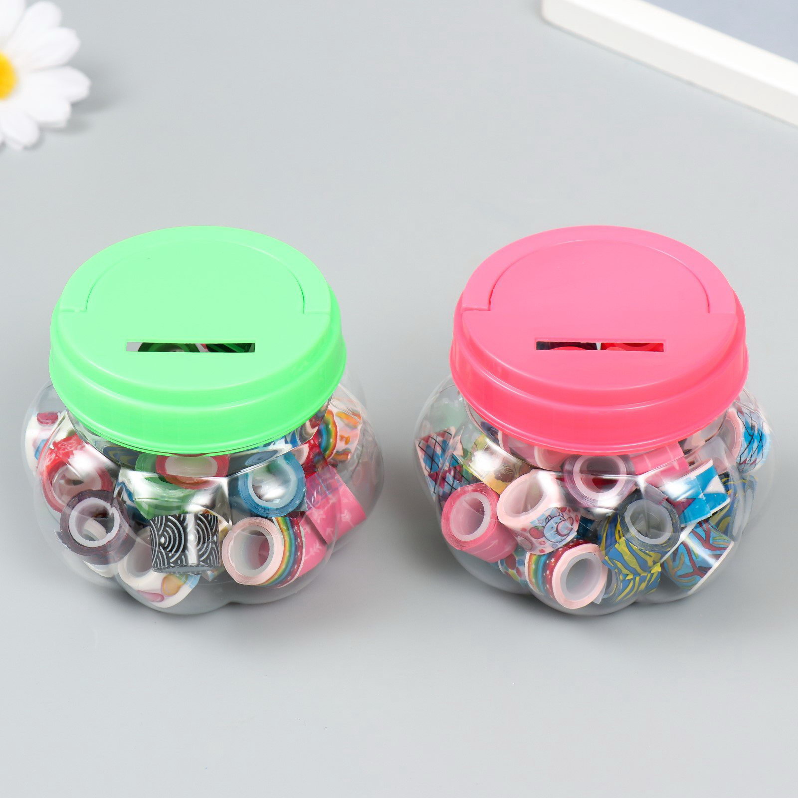 Клейкая лента набор в банке 40 шт. "Цвета", пластик, моток 1.2 смx2.8 м, банка 6.5x10x10 см, МИКС, 6.5x10x10 см., Китай