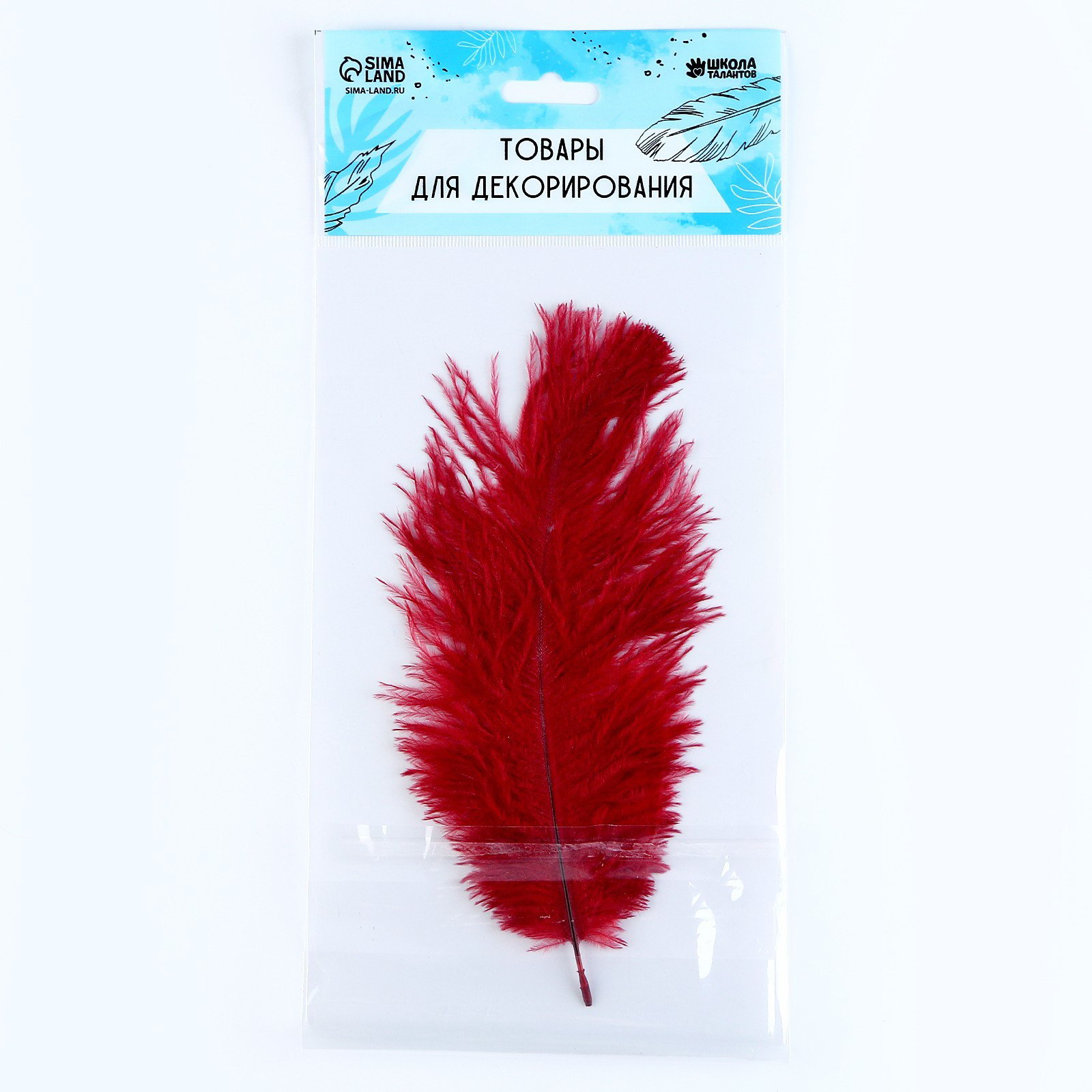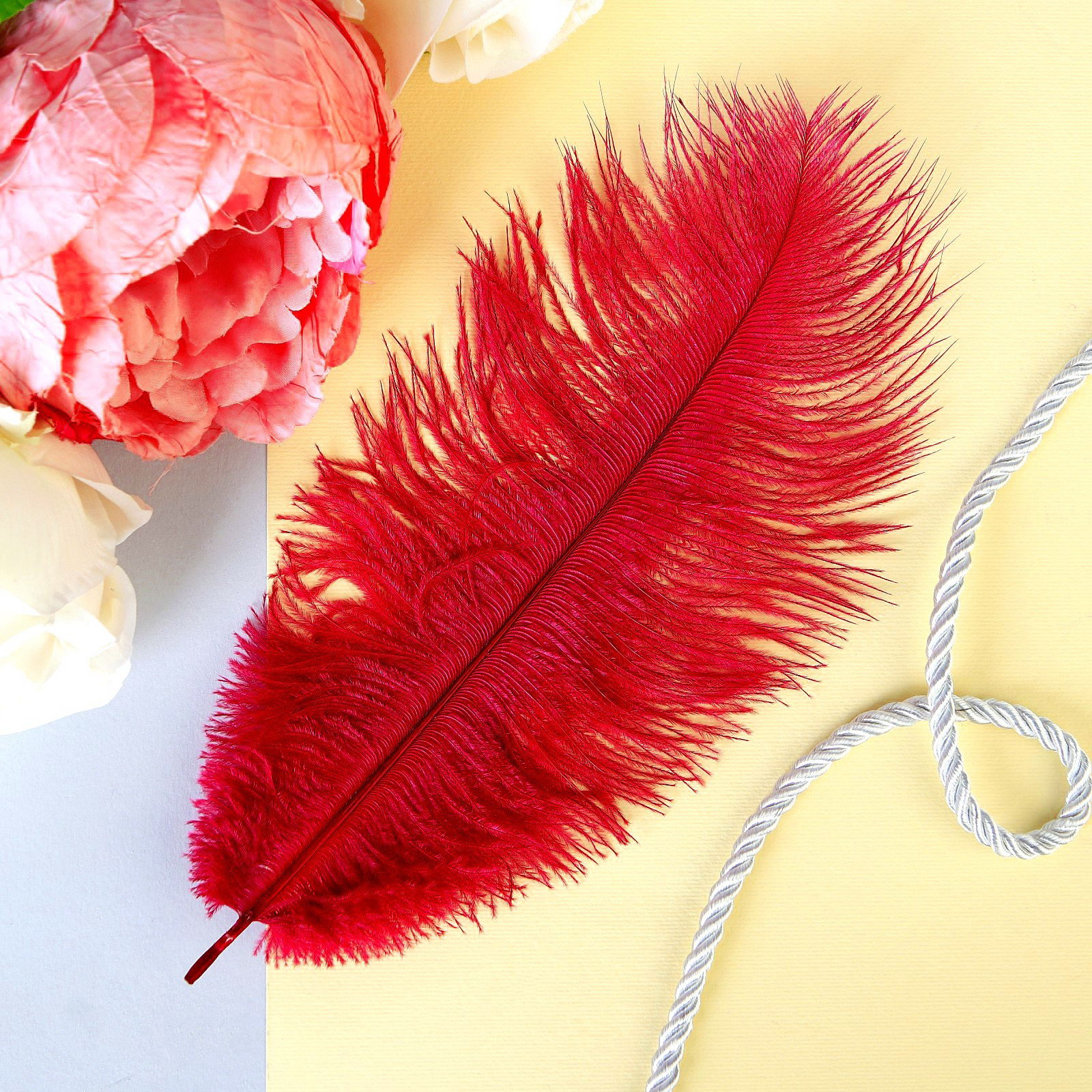 Перо для декора 1 шт., размер 24 см, цвет бордовый, 13x0.1x24 см., Китай