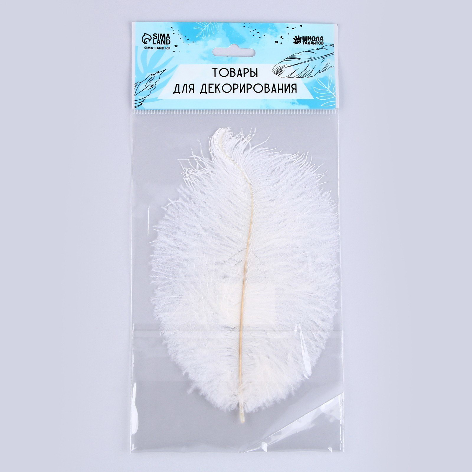 Перо для декора 1 шт., размер 20-24 см, цвет белый, 13x0.1x24 см., Школа талантов, Китай