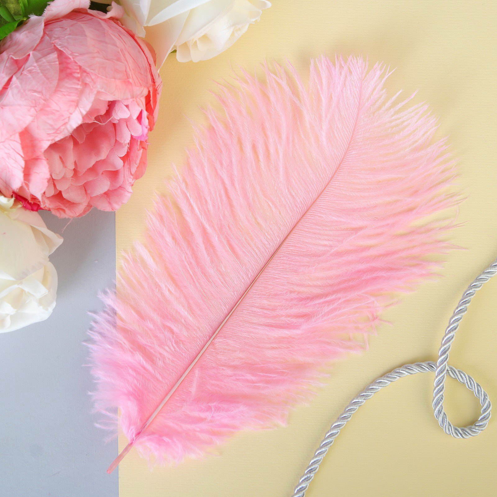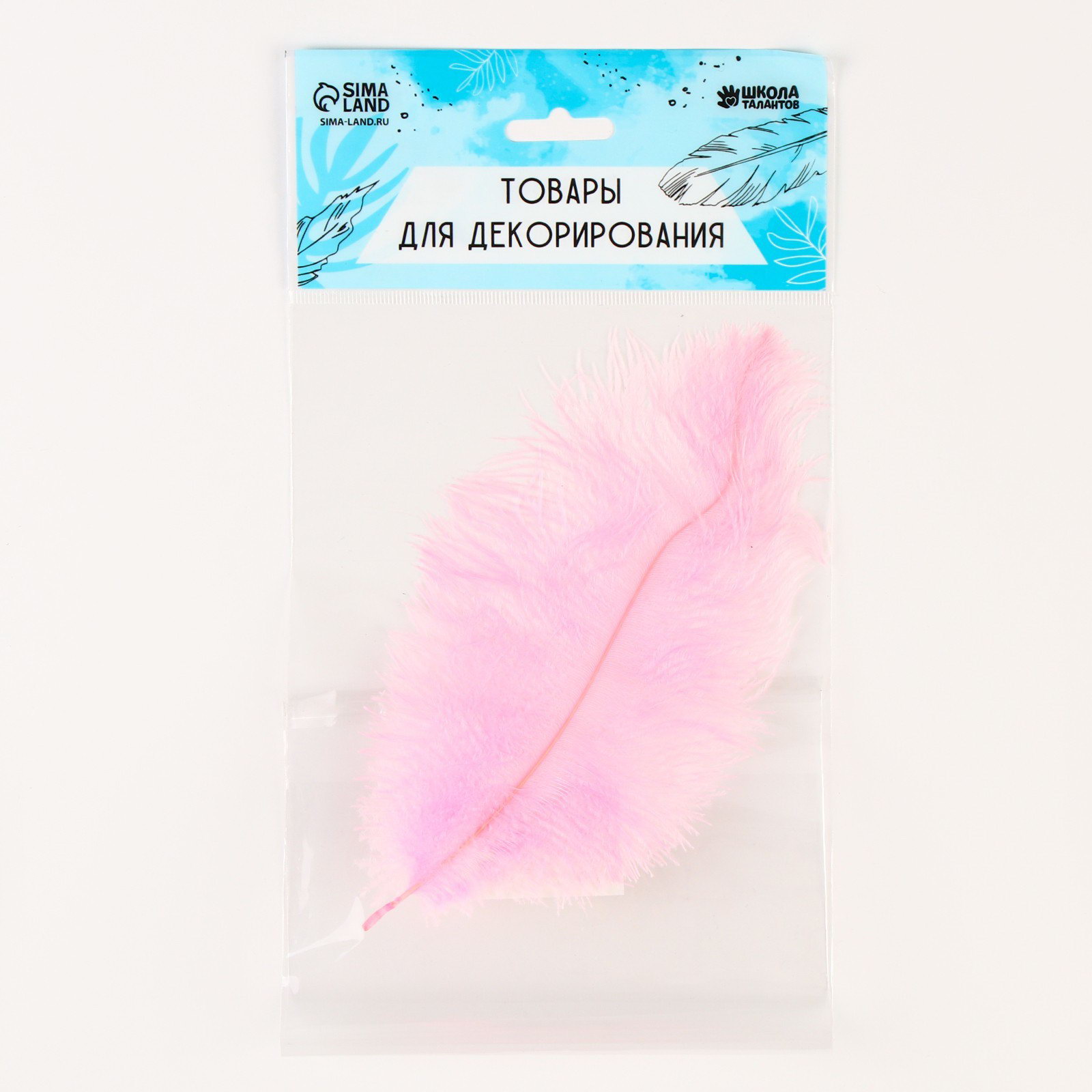 Перо для декора 1 шт., размер 20-24 см, цвет розовый, 13x0.1x24 см., Китай