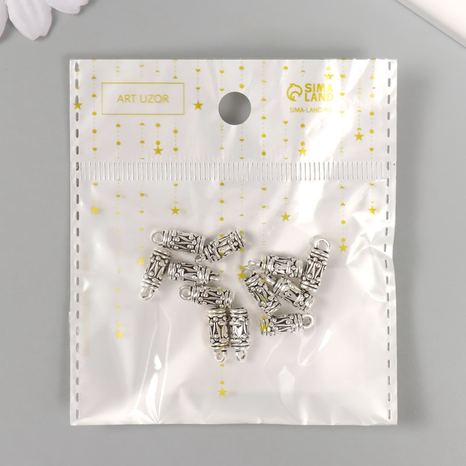 Металлический элемент, декоративный концевик "Арт Узор. Шарики и петельки", серебро, 1.3x0.5 см, 0.5x1.3 см., Арт Узор, Китай