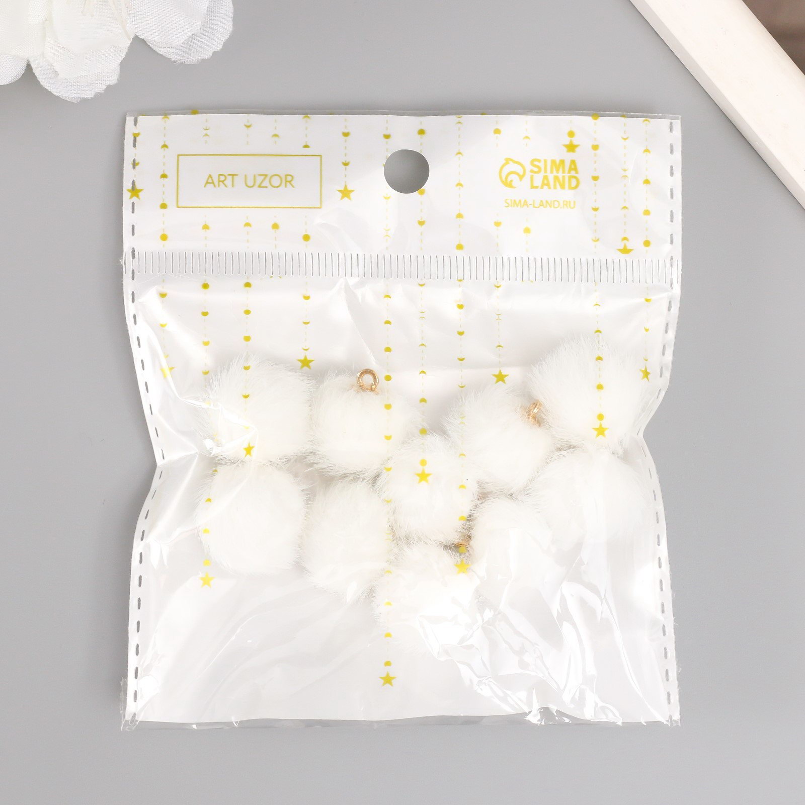 Декор для творчества искусственный мех "Шарик" белый набор 10 шт, d=2 см, 2x2x2 см., Арт Узор, Китай