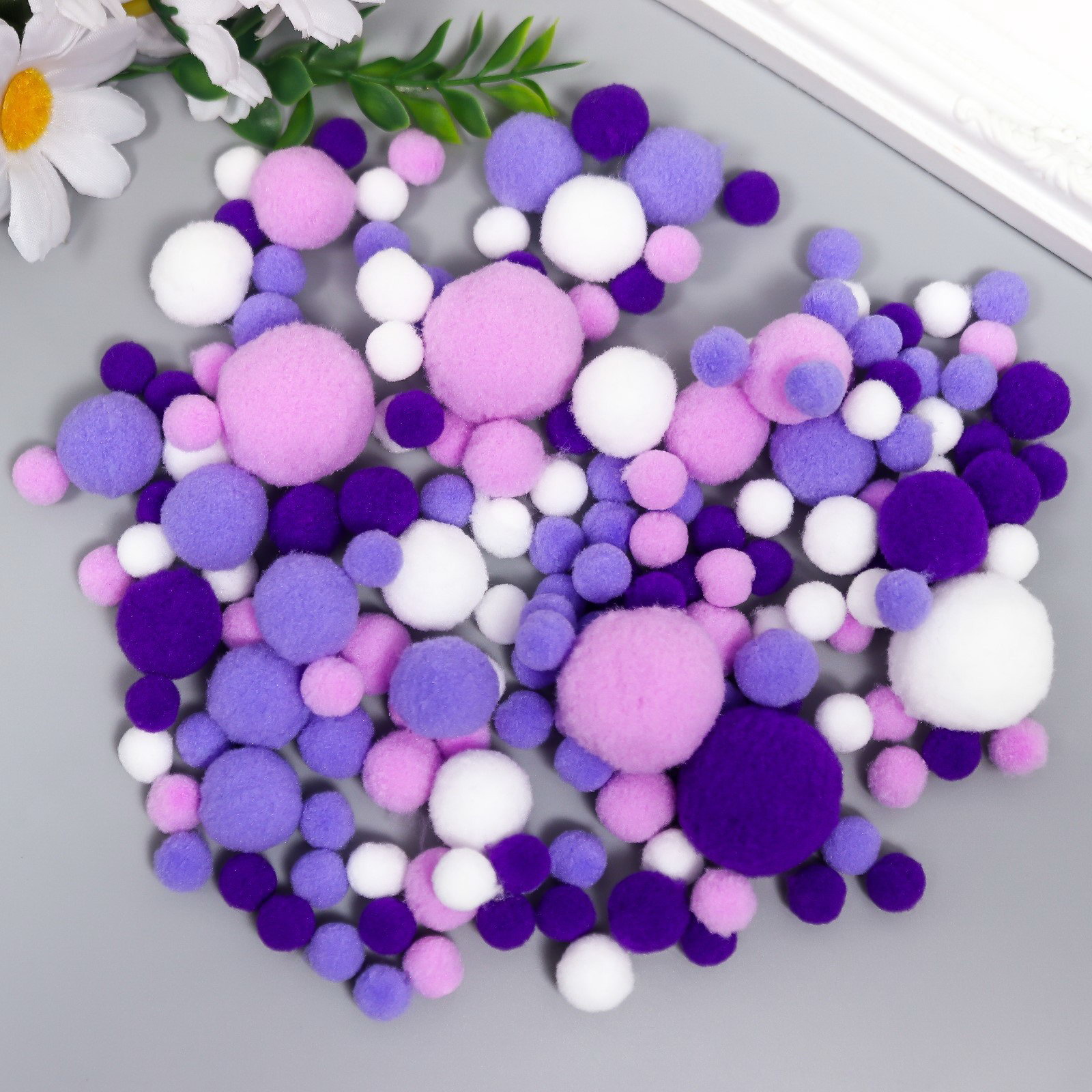 Декор для творчества "Бомбошки, фиолетовое настроение", 135 шт., d=1-3 см, 13x13x3 см., Арт Узор, Китай
