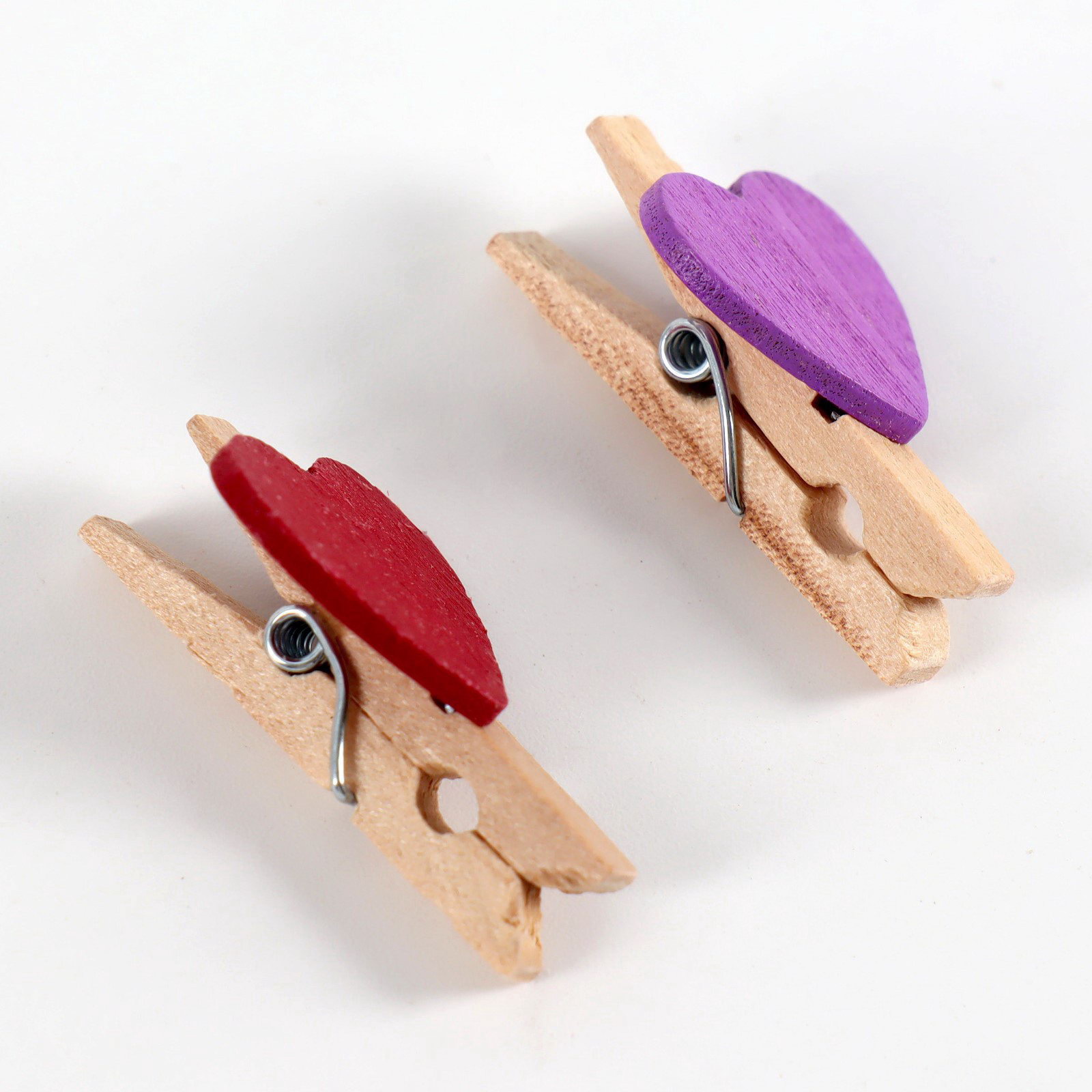 Набор прищепок в деревянной коробке "Сердечки" набор 50 шт., 2.5x12.5x8.5 см., Китай