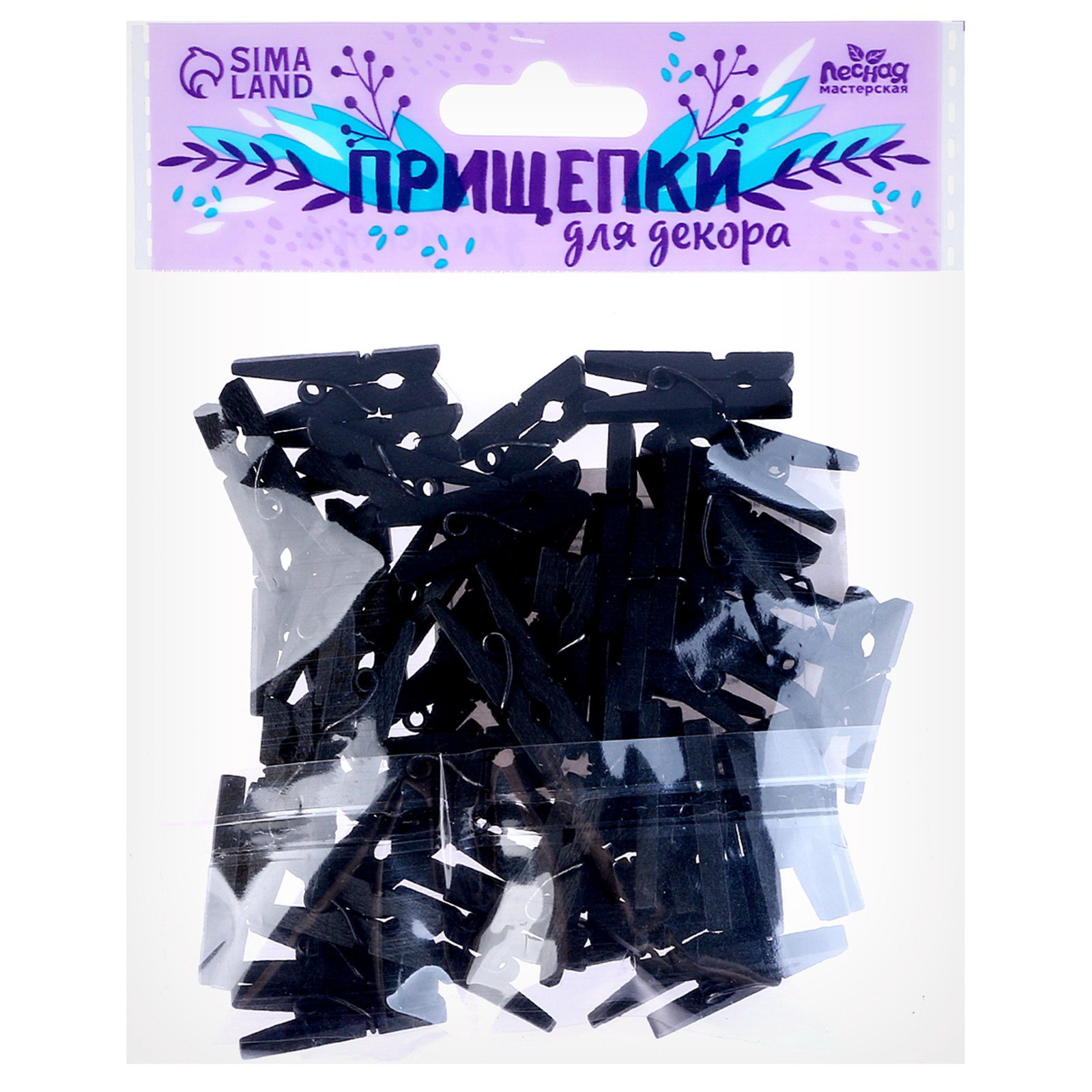 Набор прищепок для декора 50 шт., чёрные 2.5 см, 9x7x1.5 см., Школа талантов, Китай