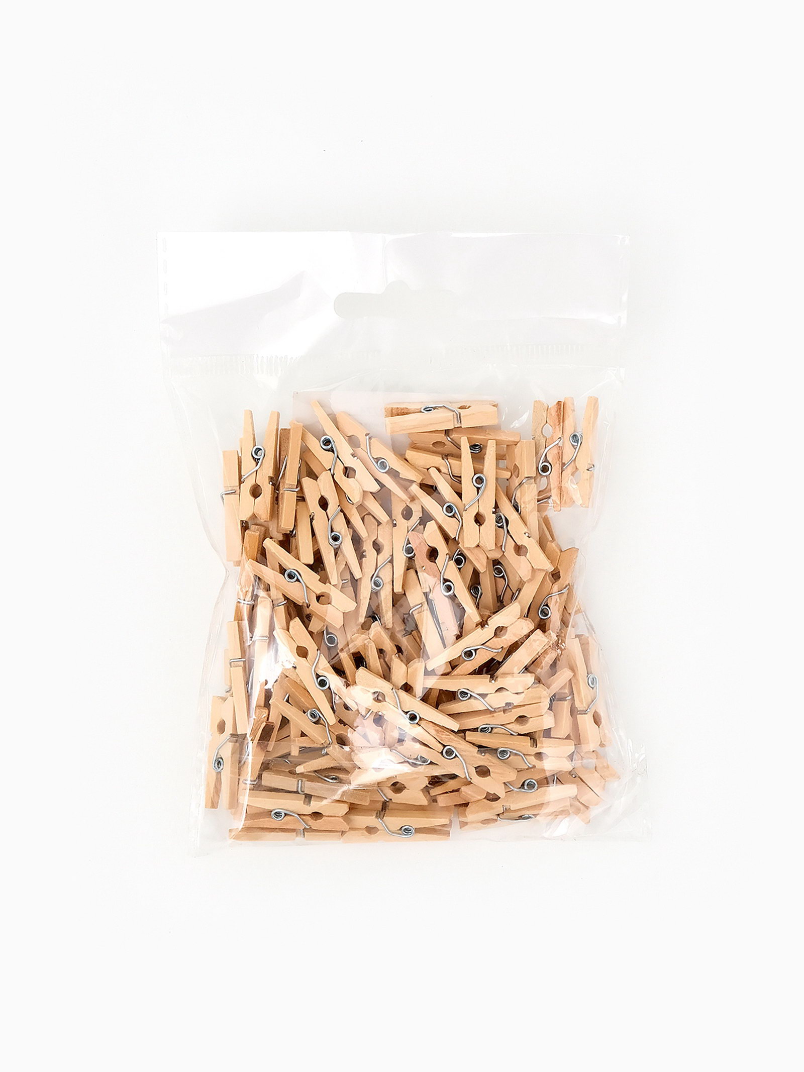 Набор прищепок "Классика" 100 штук размер 2.5х0.8 см, 12x12x1 см., Школа талантов, Китай