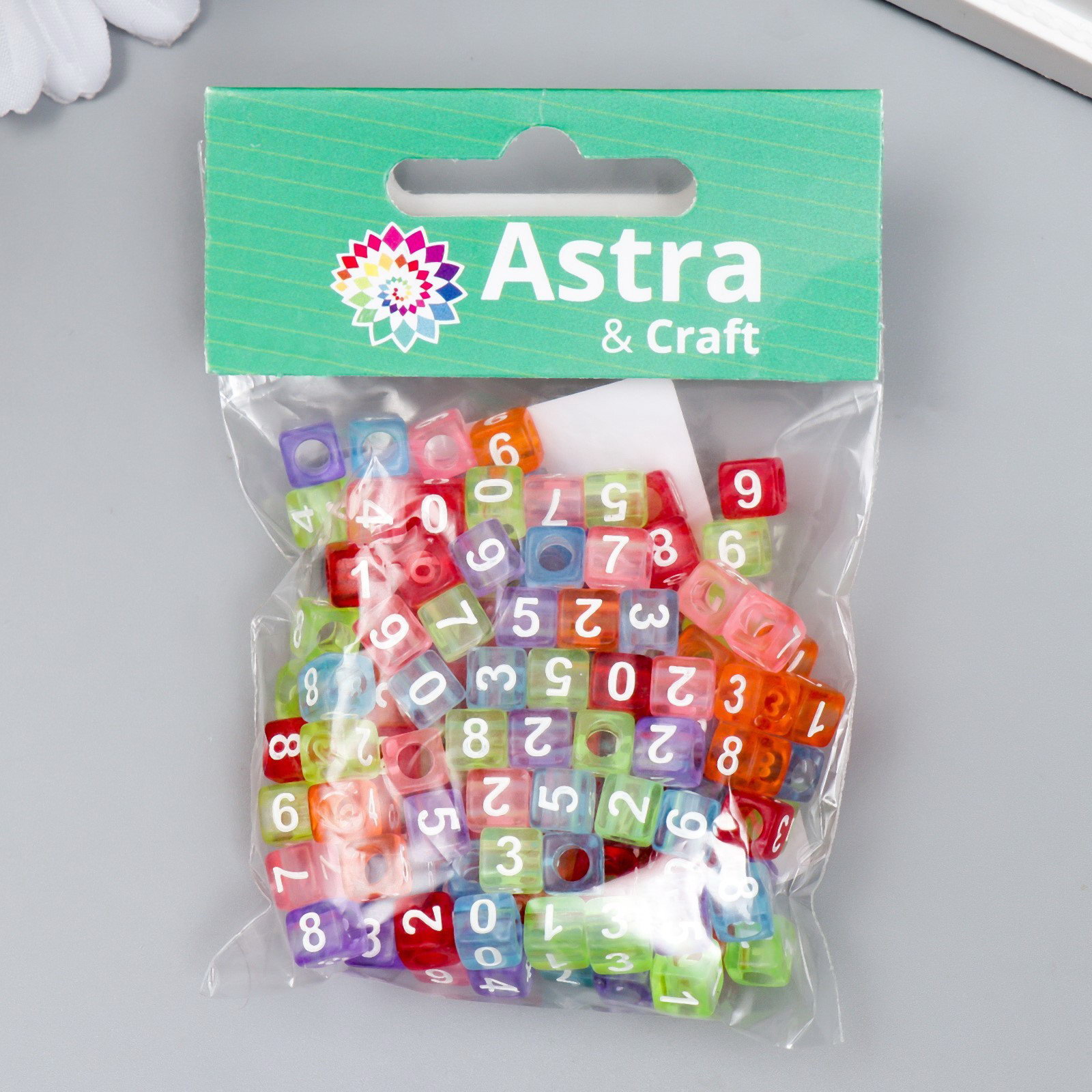 Набор цветных бусин с цифрами "Астра" 6х6 мм, 150 шт/упак, ASTRA, Китай