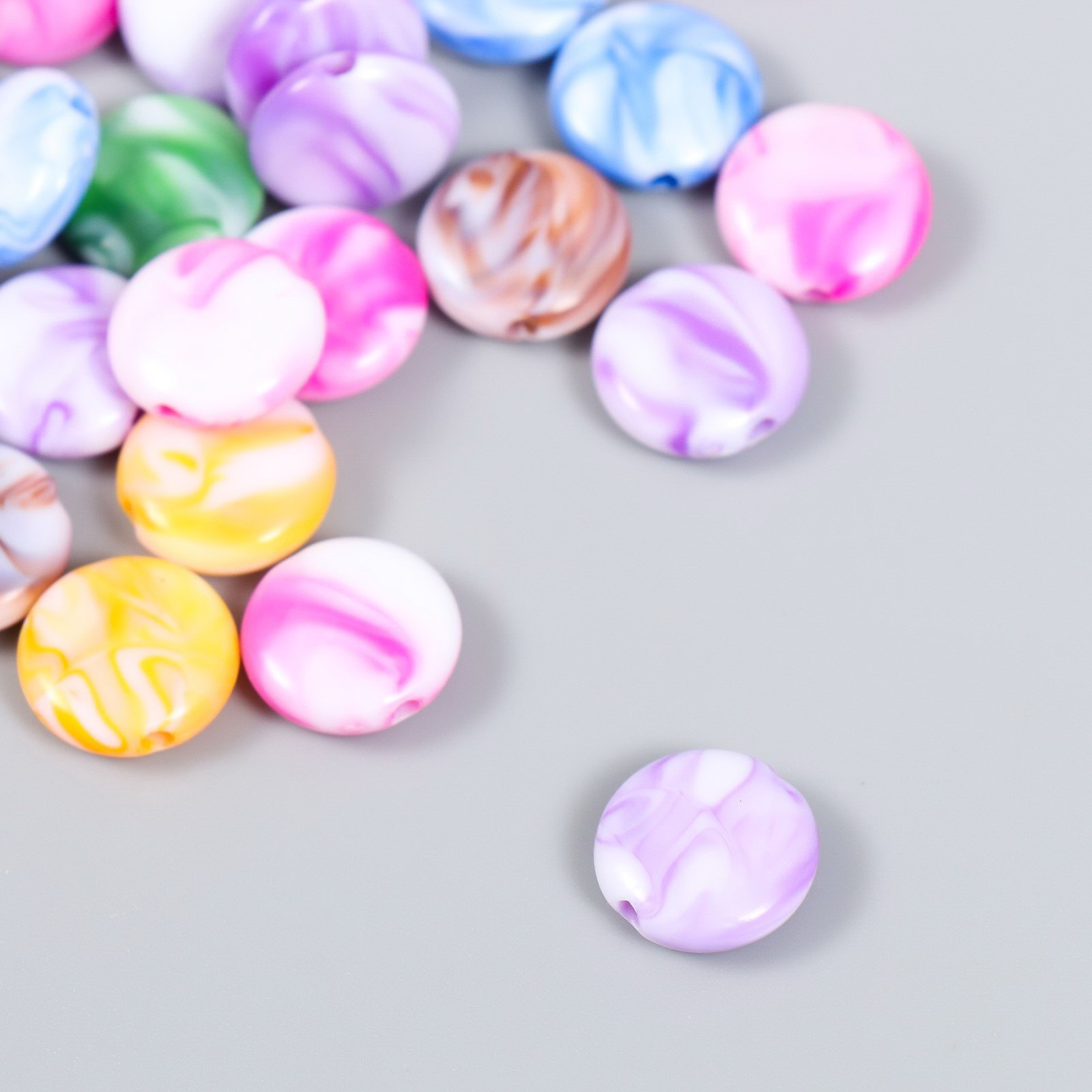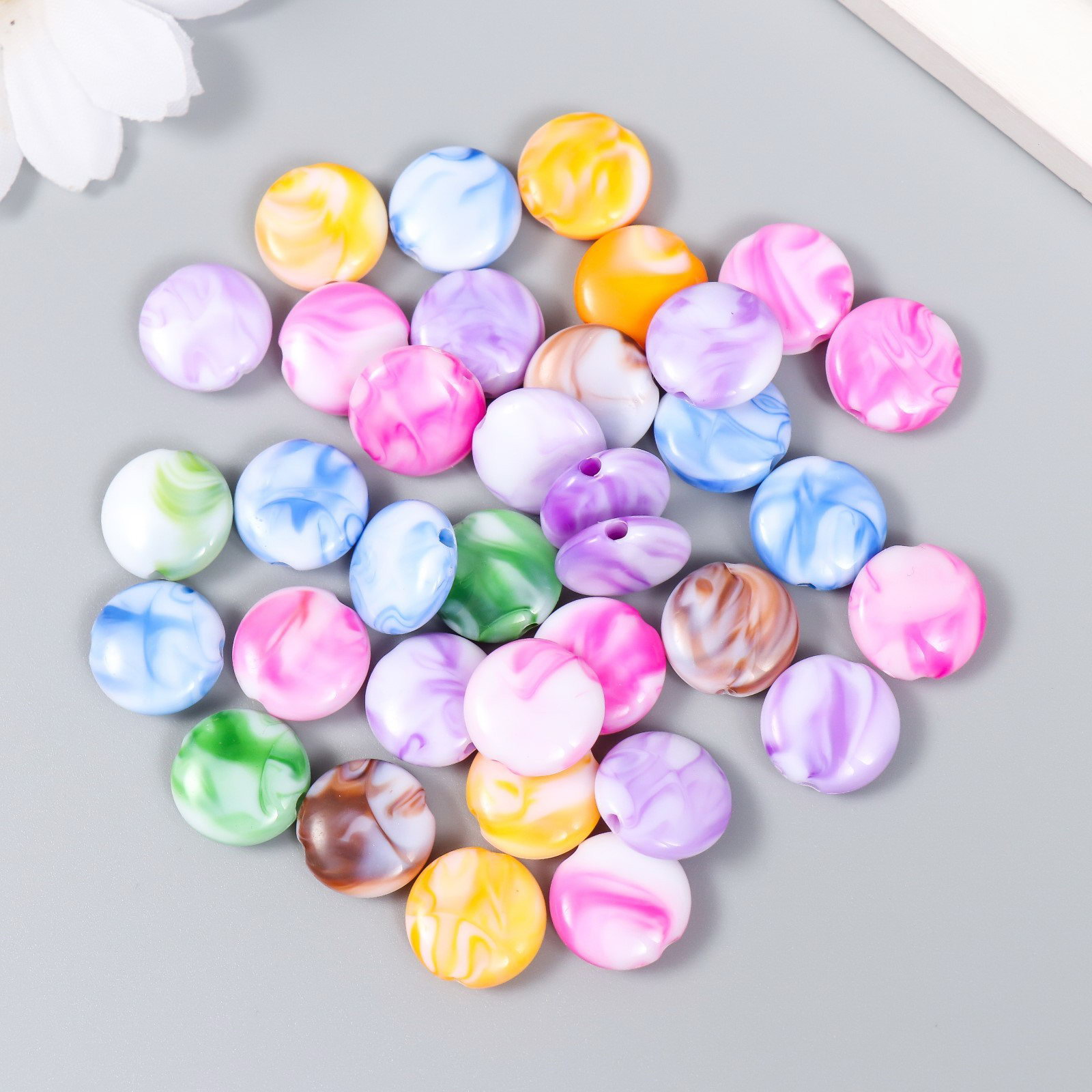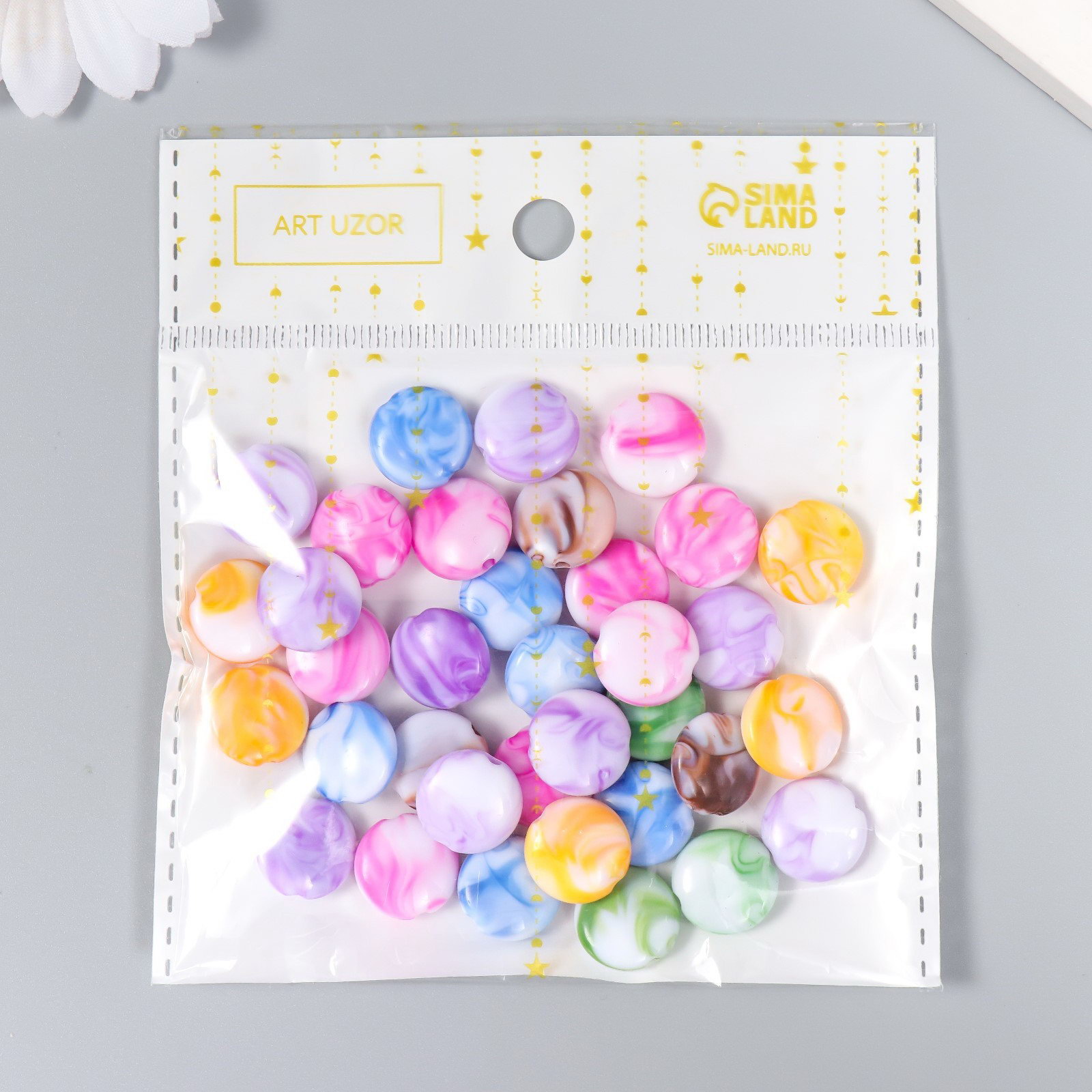 Бусины для творчества пластик "Сплющенные круги мрамор", цветные, 20 г 1.3x1.3x0.5 см, 1.3x1.3x0.5 см., Арт Узор, Китай