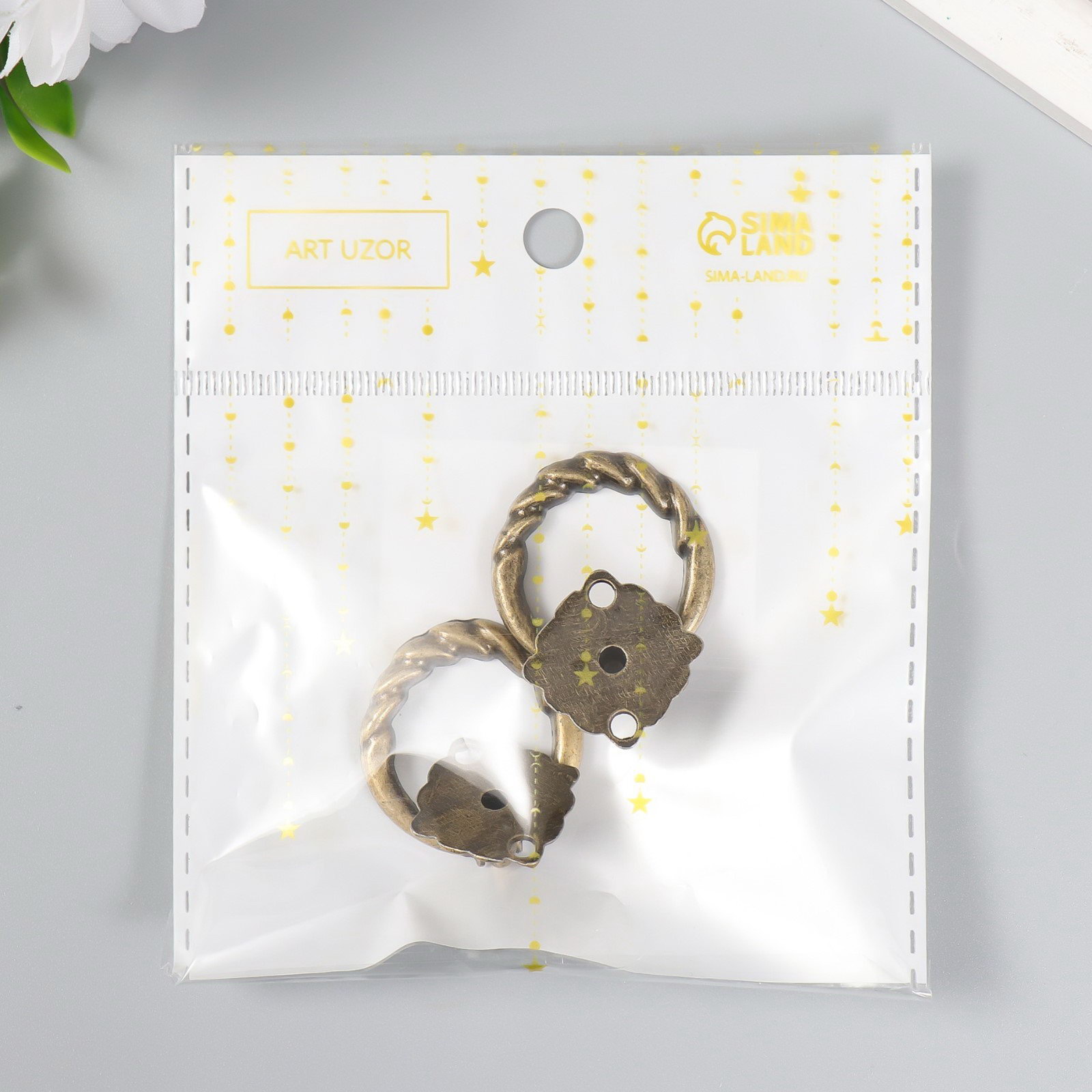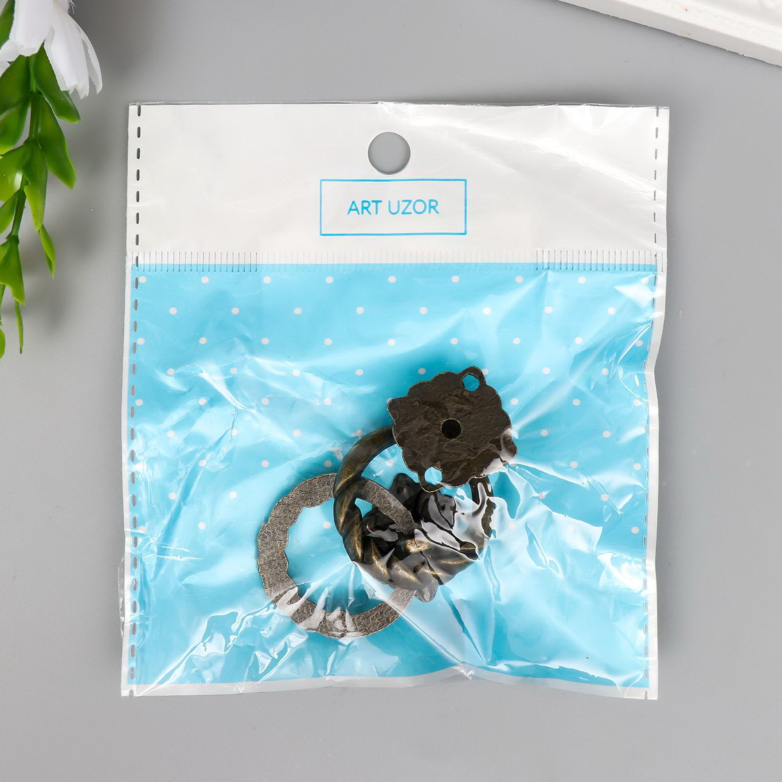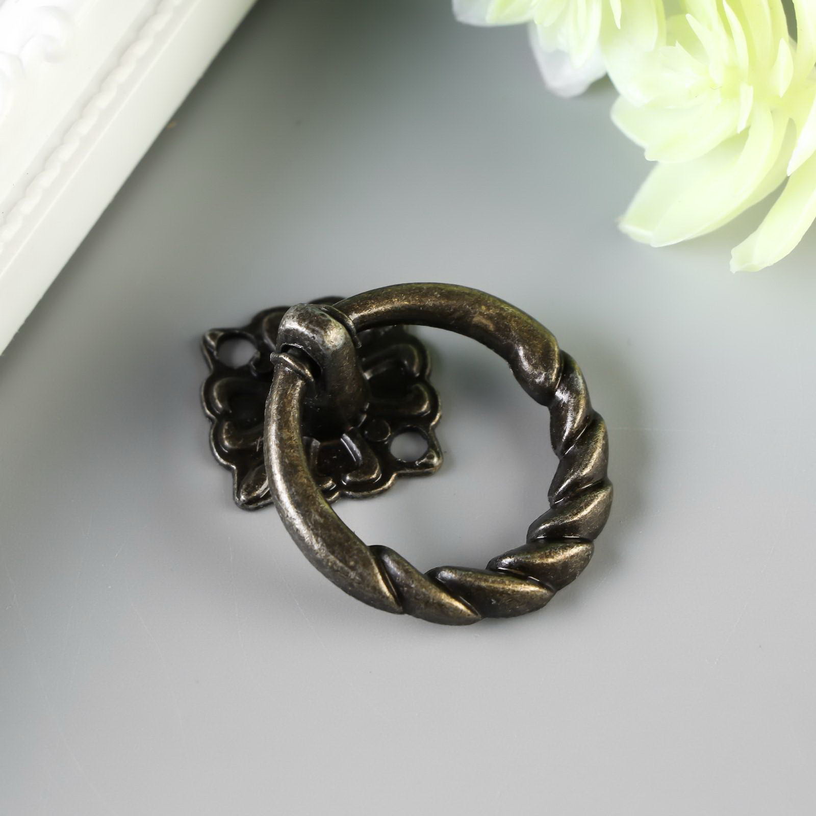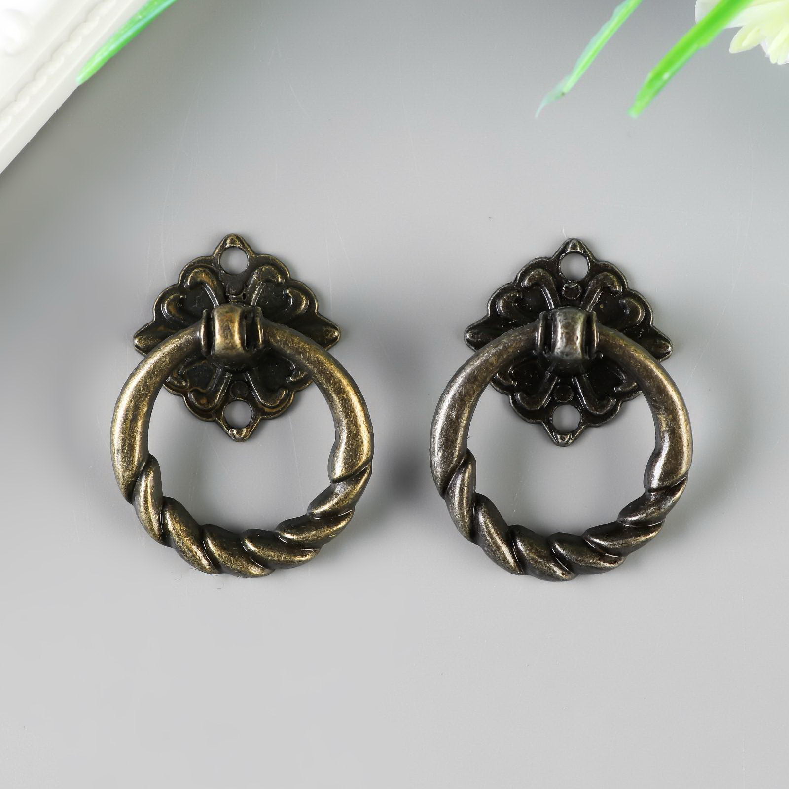 Ручка для шкатулки, ключницы "Молоточек косичка", металл под бронзу, набор 2 шт., 4x3x1.5 см., Арт Узор, Китай