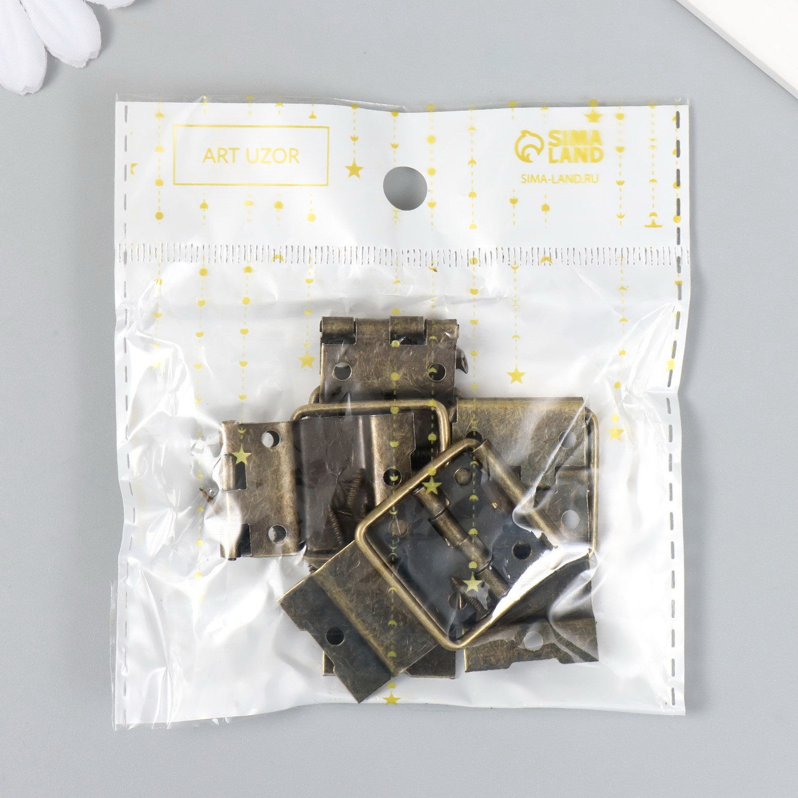 Петля накладная с упором угол открывания 90 градусов + гвозд. бронза набор 5 шт 4.8х2.4 см, 2.4x4.8 см., Арт Узор, Китай