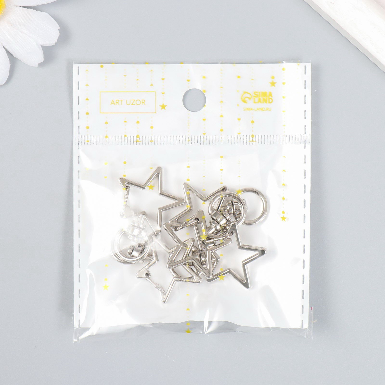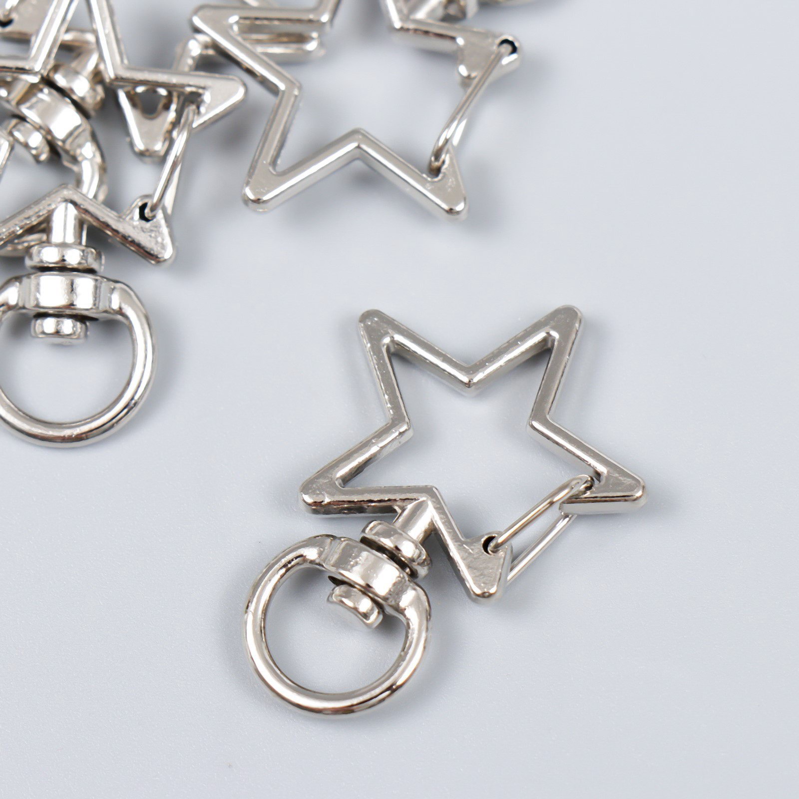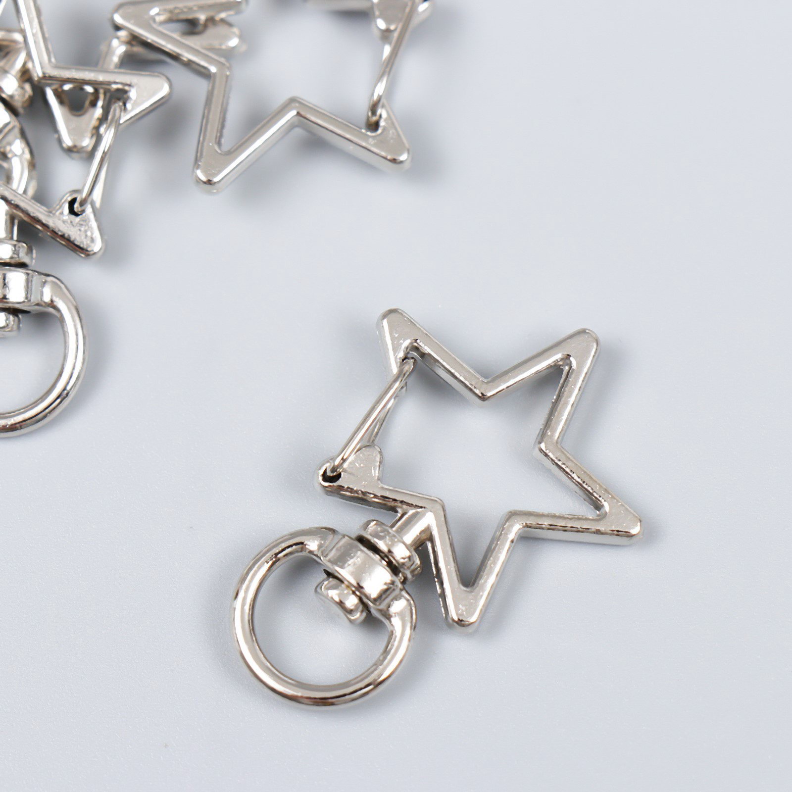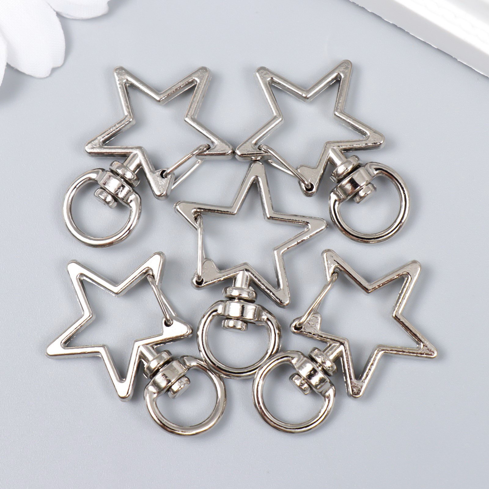 Карабин металл с кольцом "Звезда" серебро набор 5 шт 3.4х2.3 см, Арт Узор, Китай