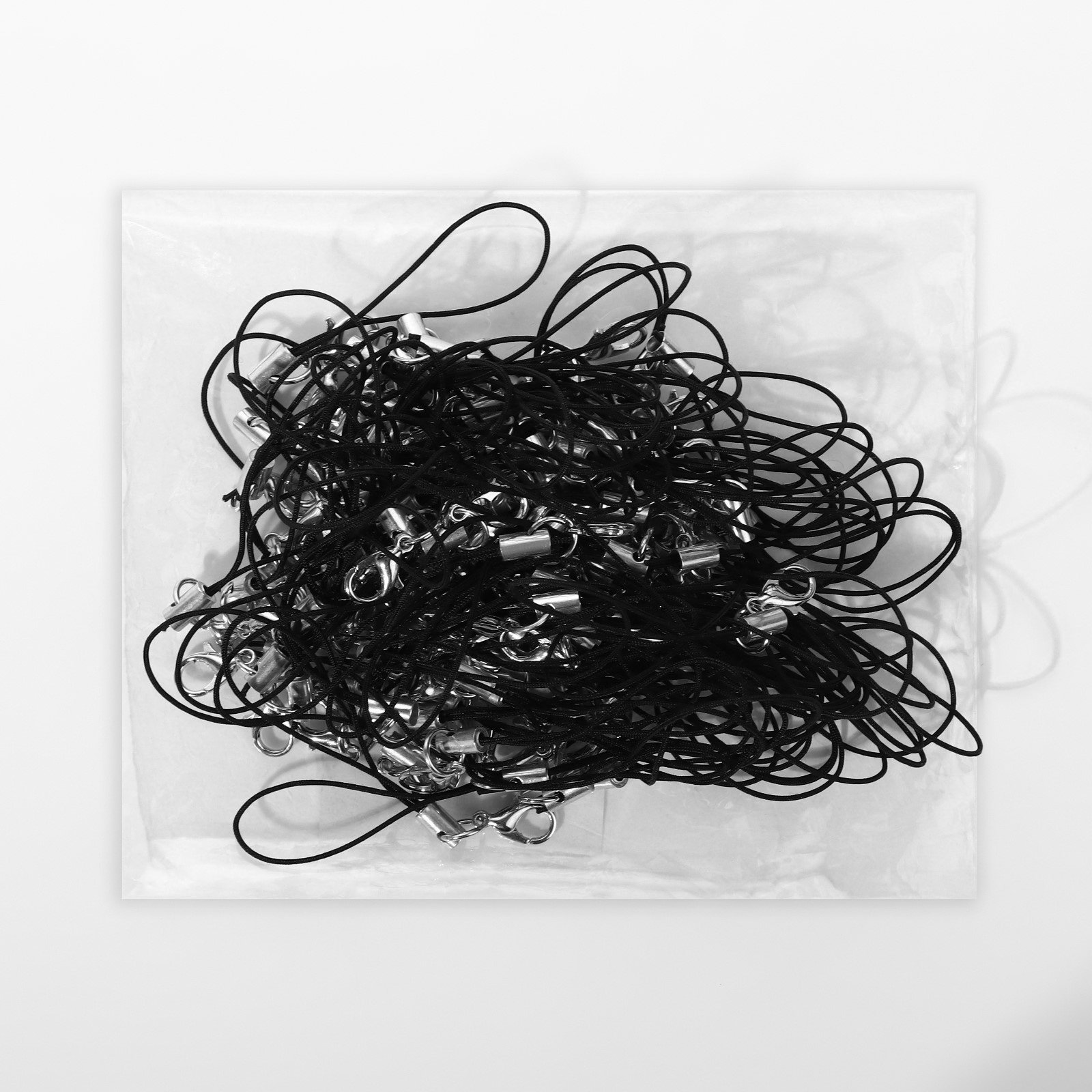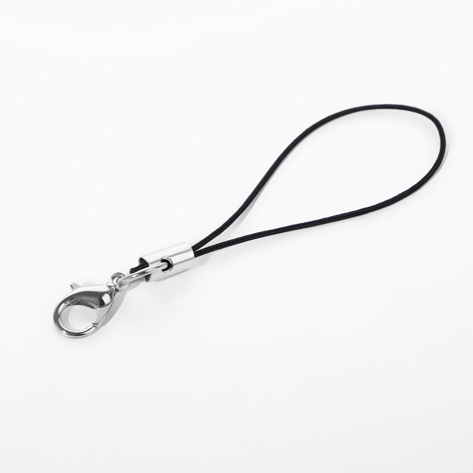 Основа для брелока на нитке с карабином 6см набор 100 шт чёрный/серебряный, 6 см., Китай