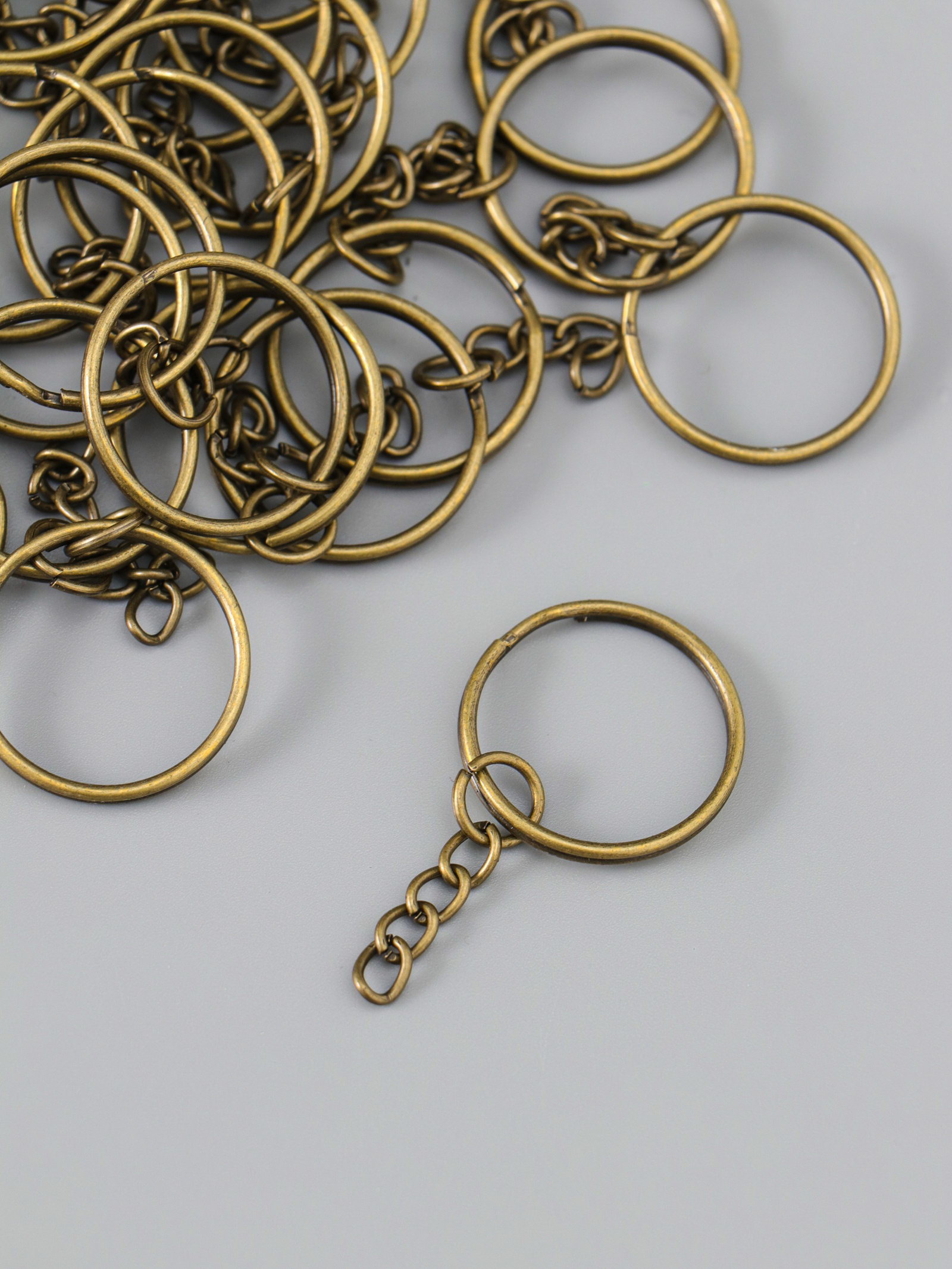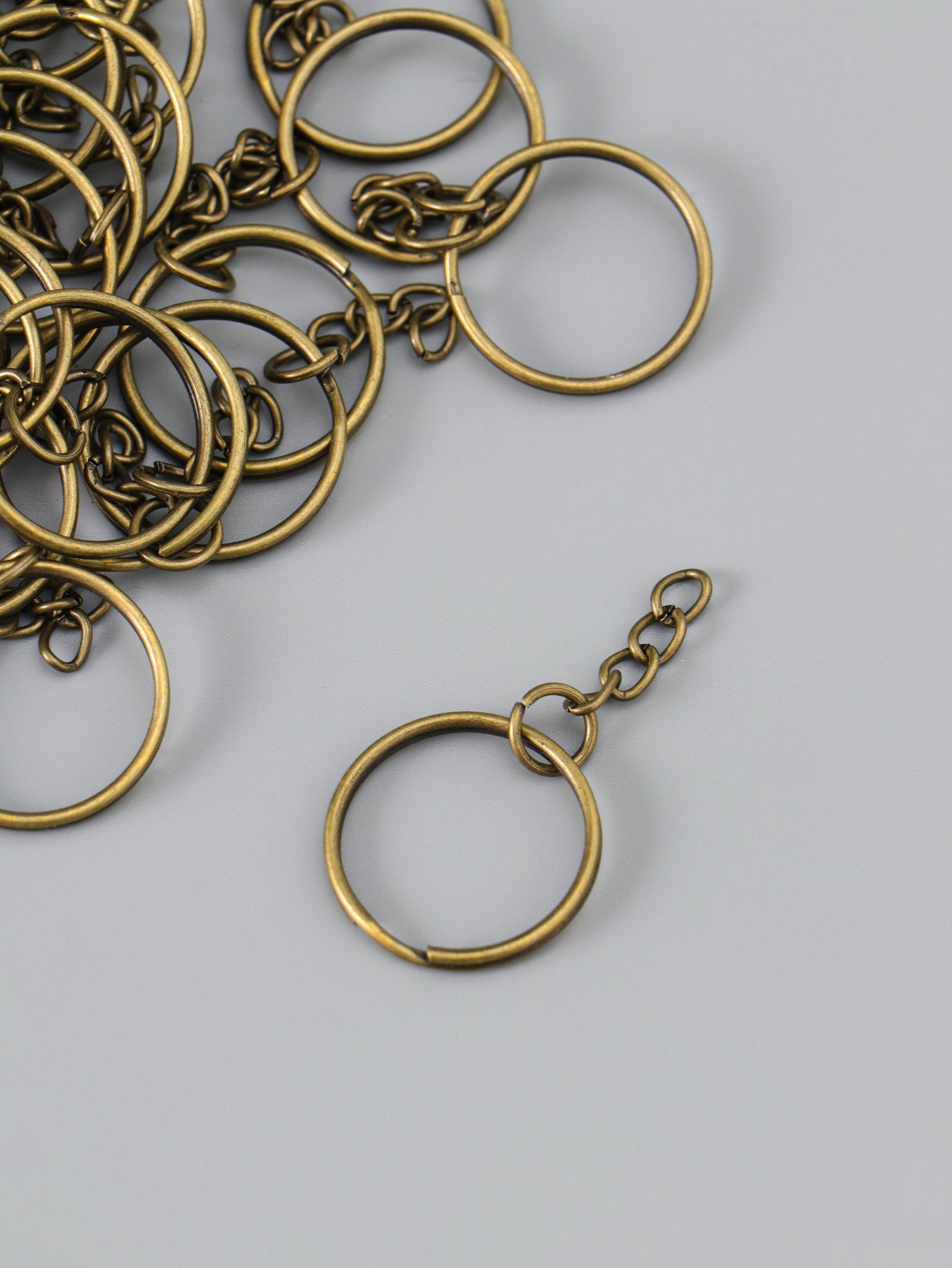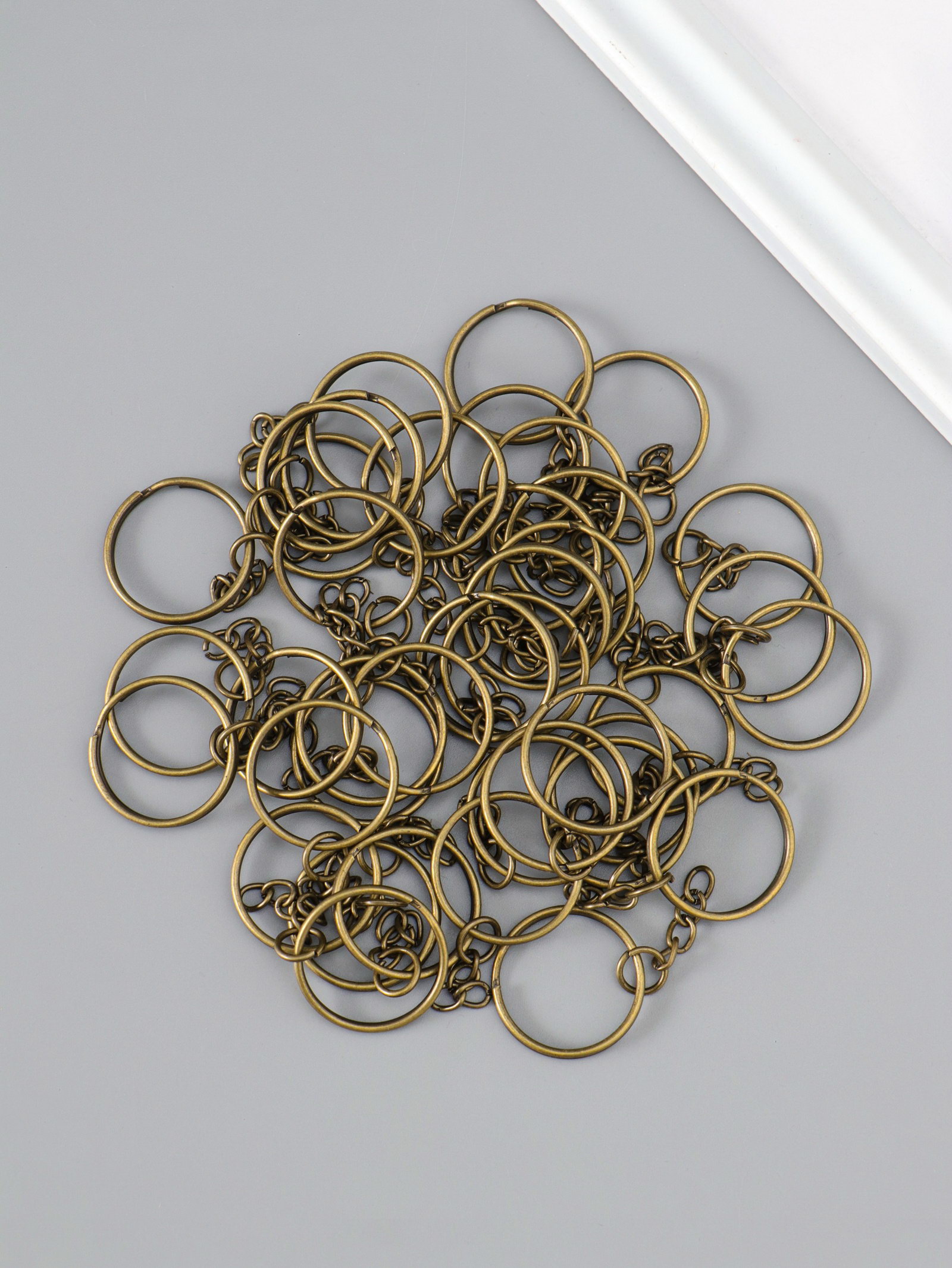 Основа для брелока кольцо с цепочкой, металл под бронзу, 2.5x2.5 см, набор 40 шт., 2.5x2.5 см., Арт Узор, Китай