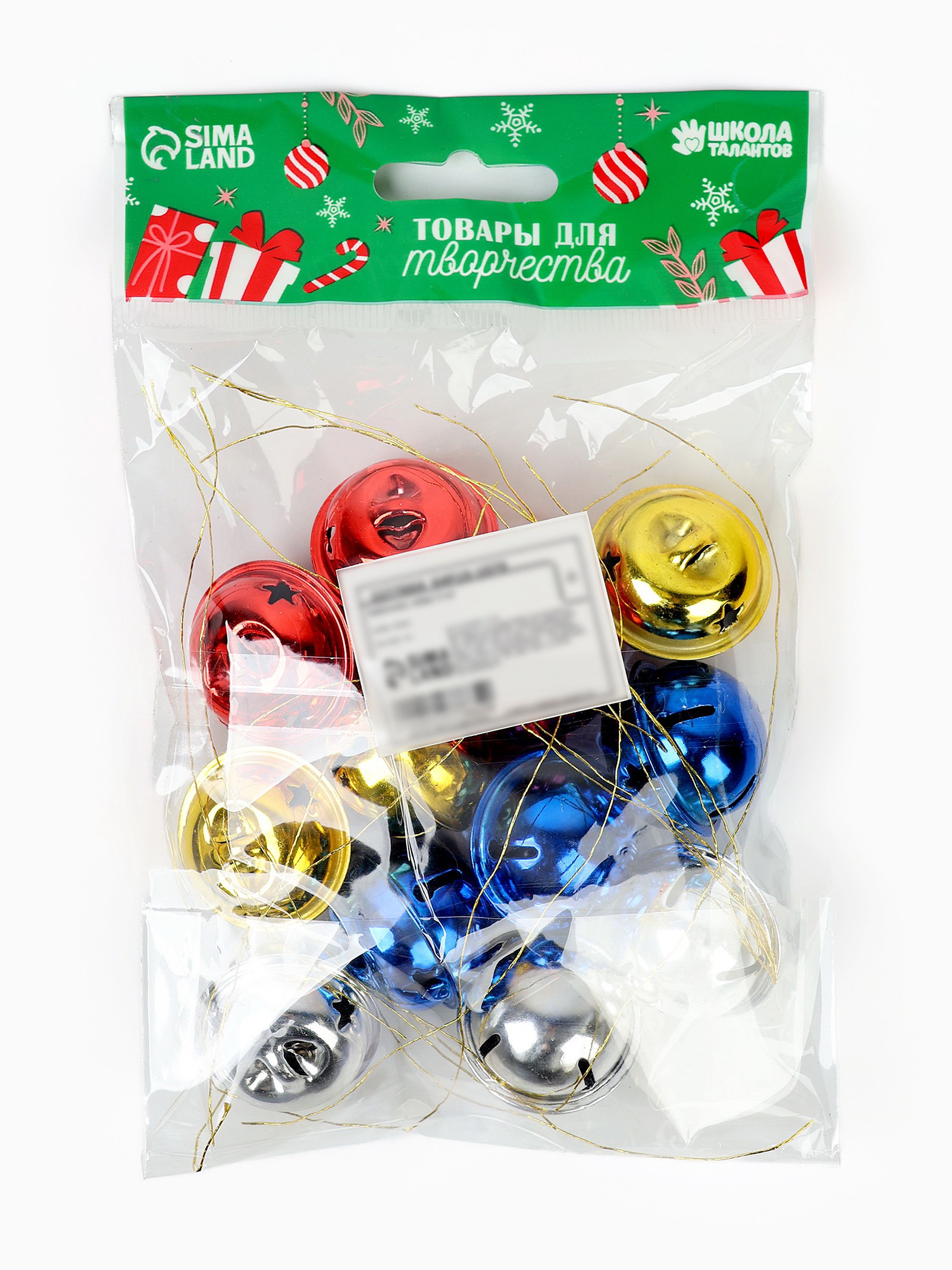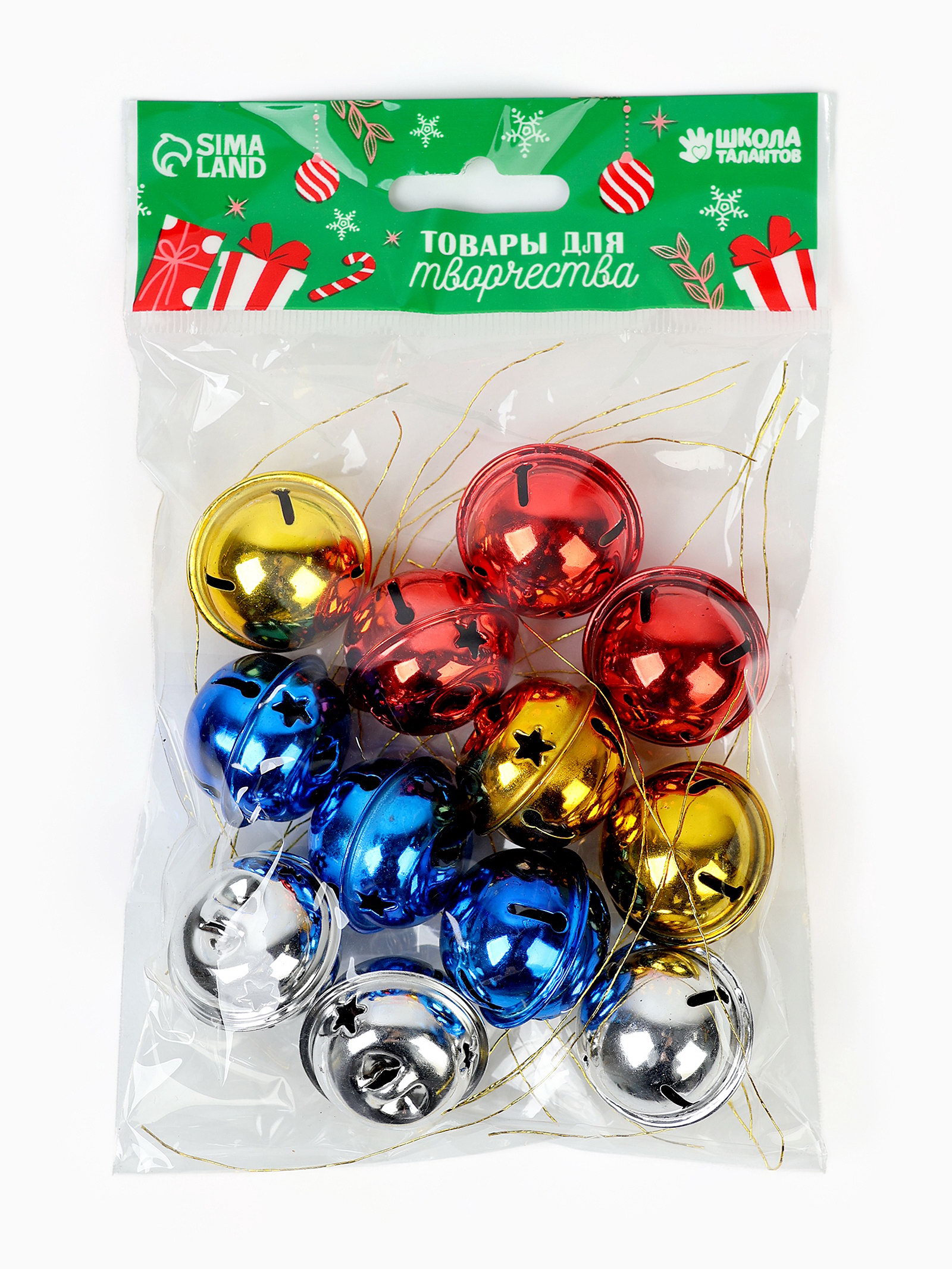 Бубенчики, набор 12 шт., размер 1 шт.: 3x3 см, цвет красный, жёлтый, синий, серебряный, 7x2x12 см., Школа талантов, Китай