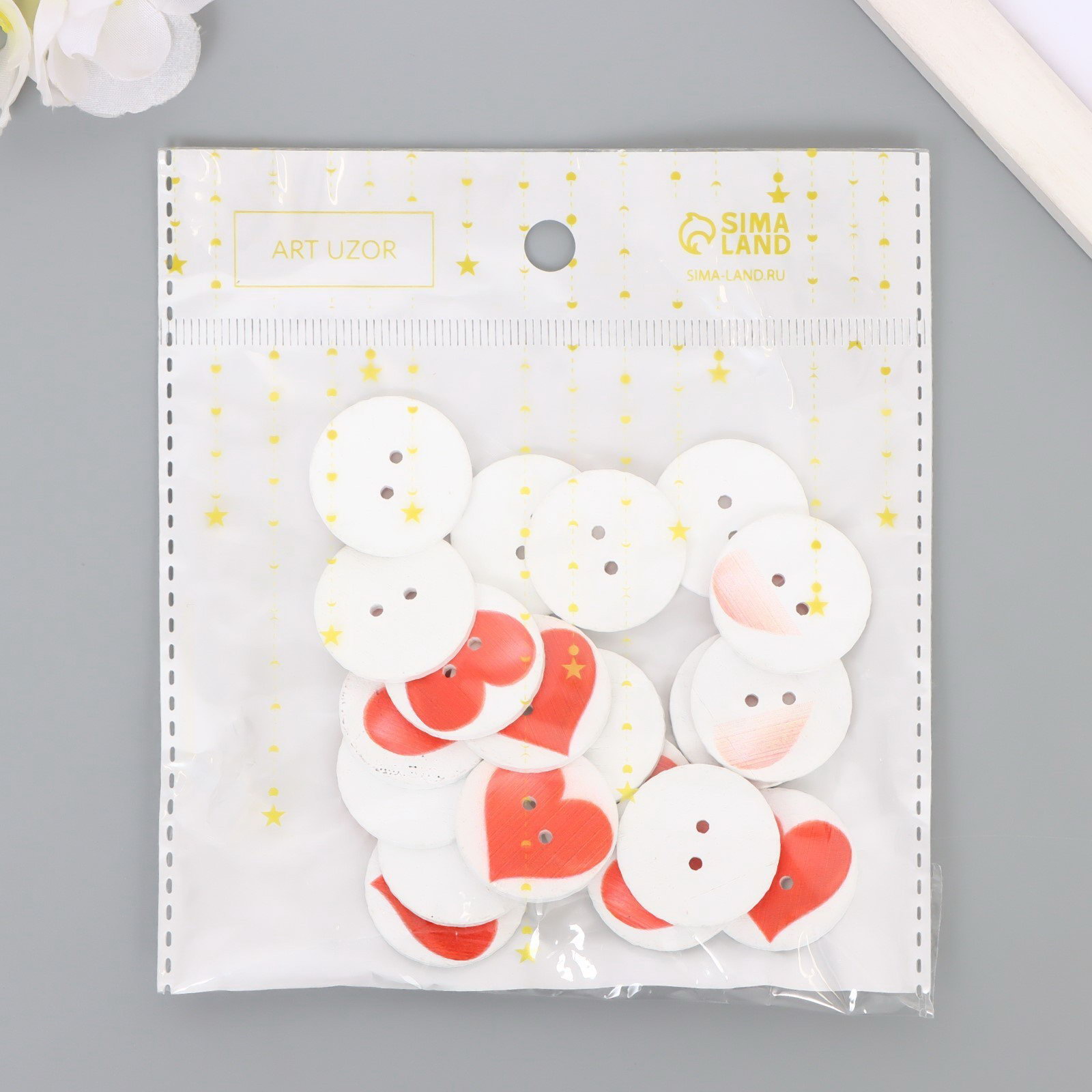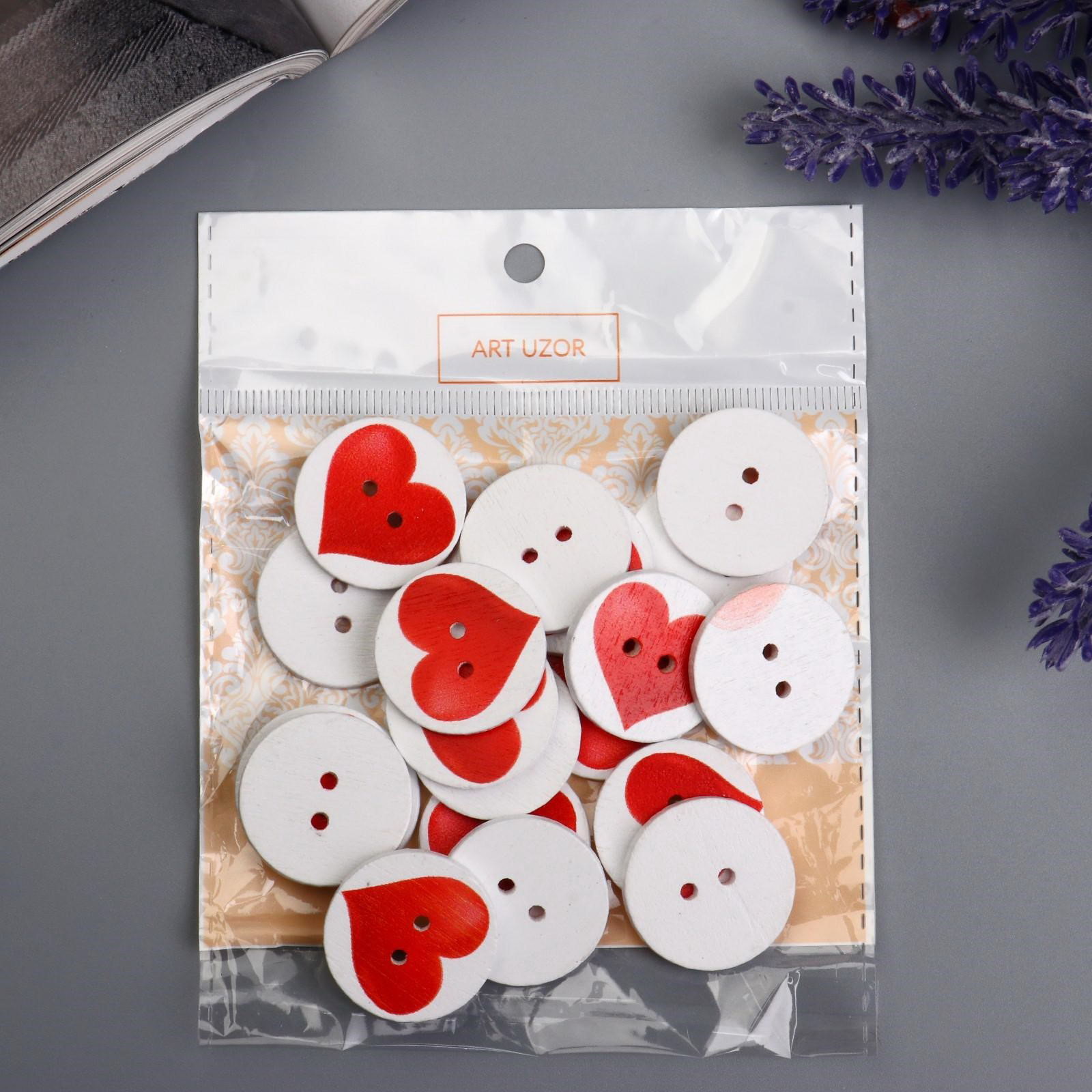 Пуговица декоративная "Арт Узор. Сердечко", дерево, 2.5x2.5 см, 2.5x2.5x0.2 см., Арт Узор, Китай