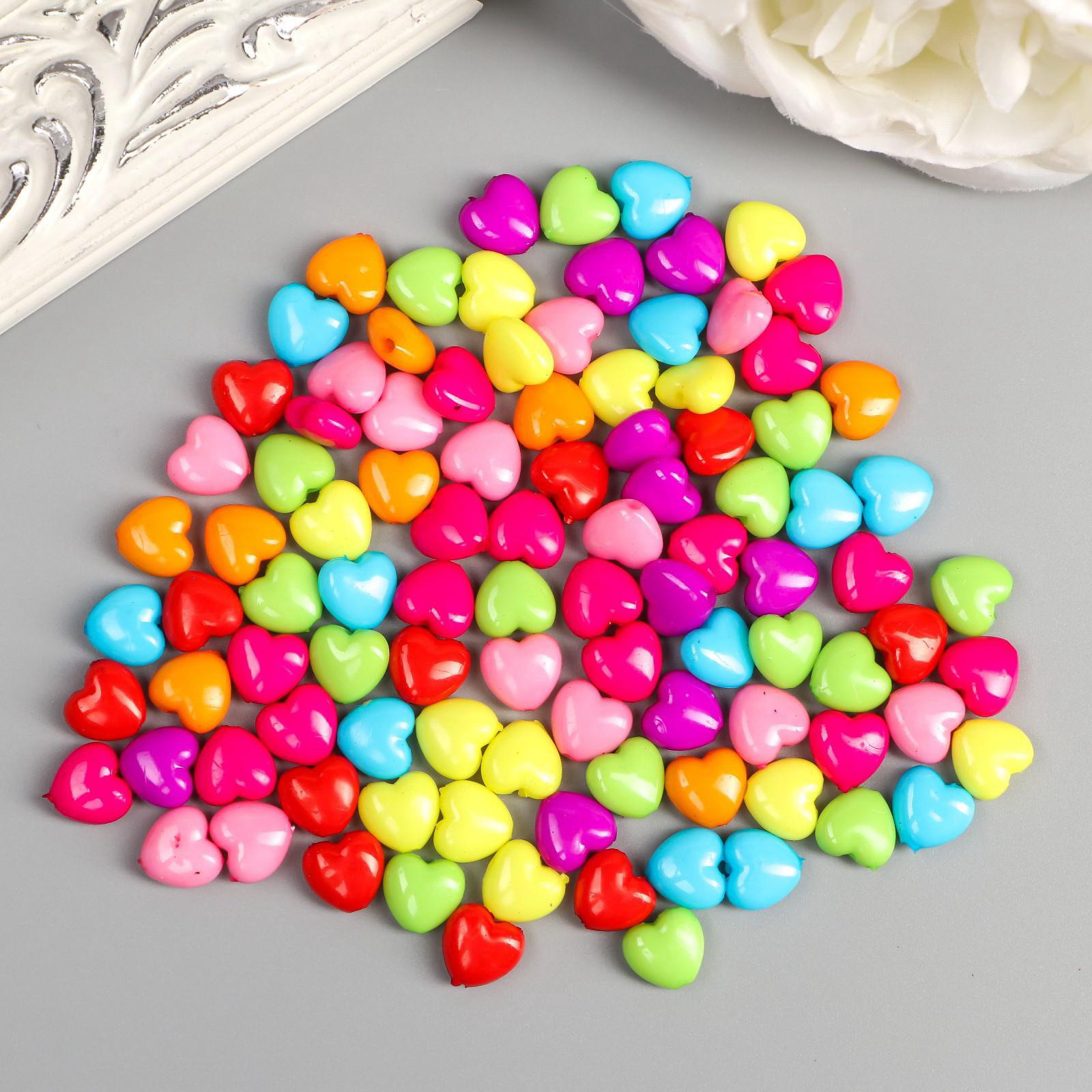 Набор бусин для рукоделия и плетения "Арт Узор. Сердечко пузатое", цветные, 100 шт. 1x1.1 см, 1x1.1 см., Арт Узор, Китай