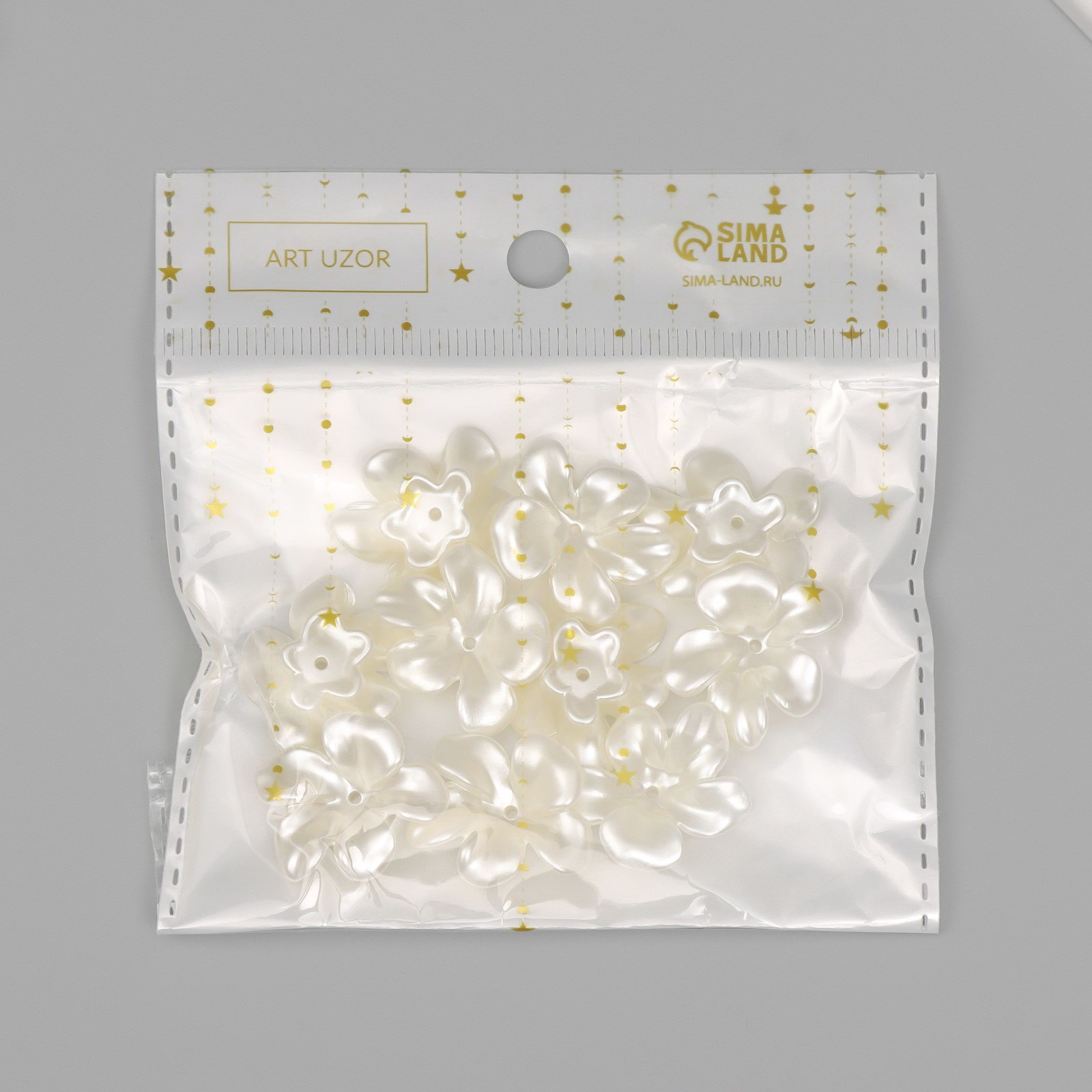 Бусины для творчества пластик "Жемчужный цветок" набор 10 шт 2х2.4 см, 2x2.4 см., Арт Узор, Китай
