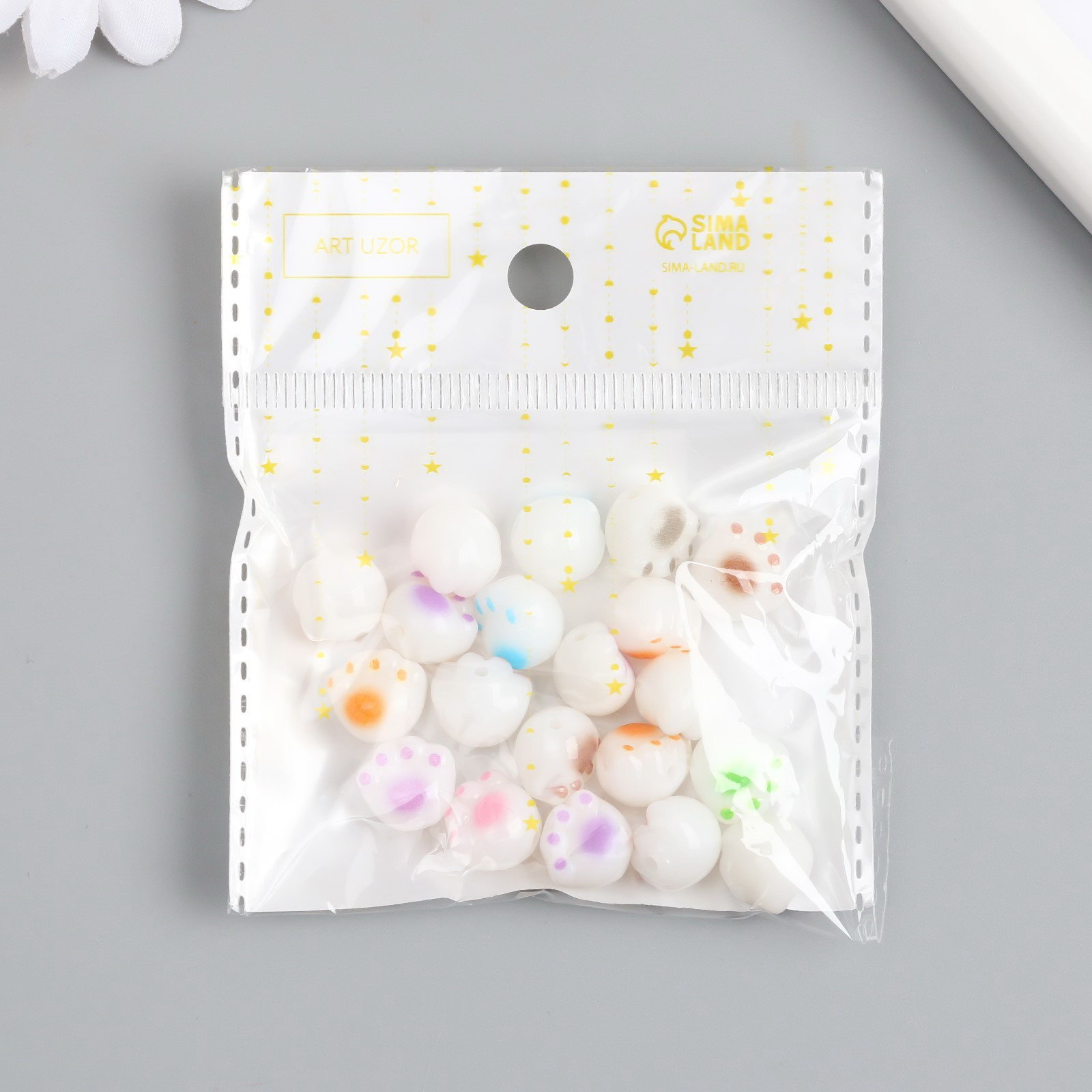 Бусины для творчества пластик "Лапка" набор 10 шт 1.1х1.2х0.9 см, 1.2x1.1x0.9 см., Арт Узор, Китай