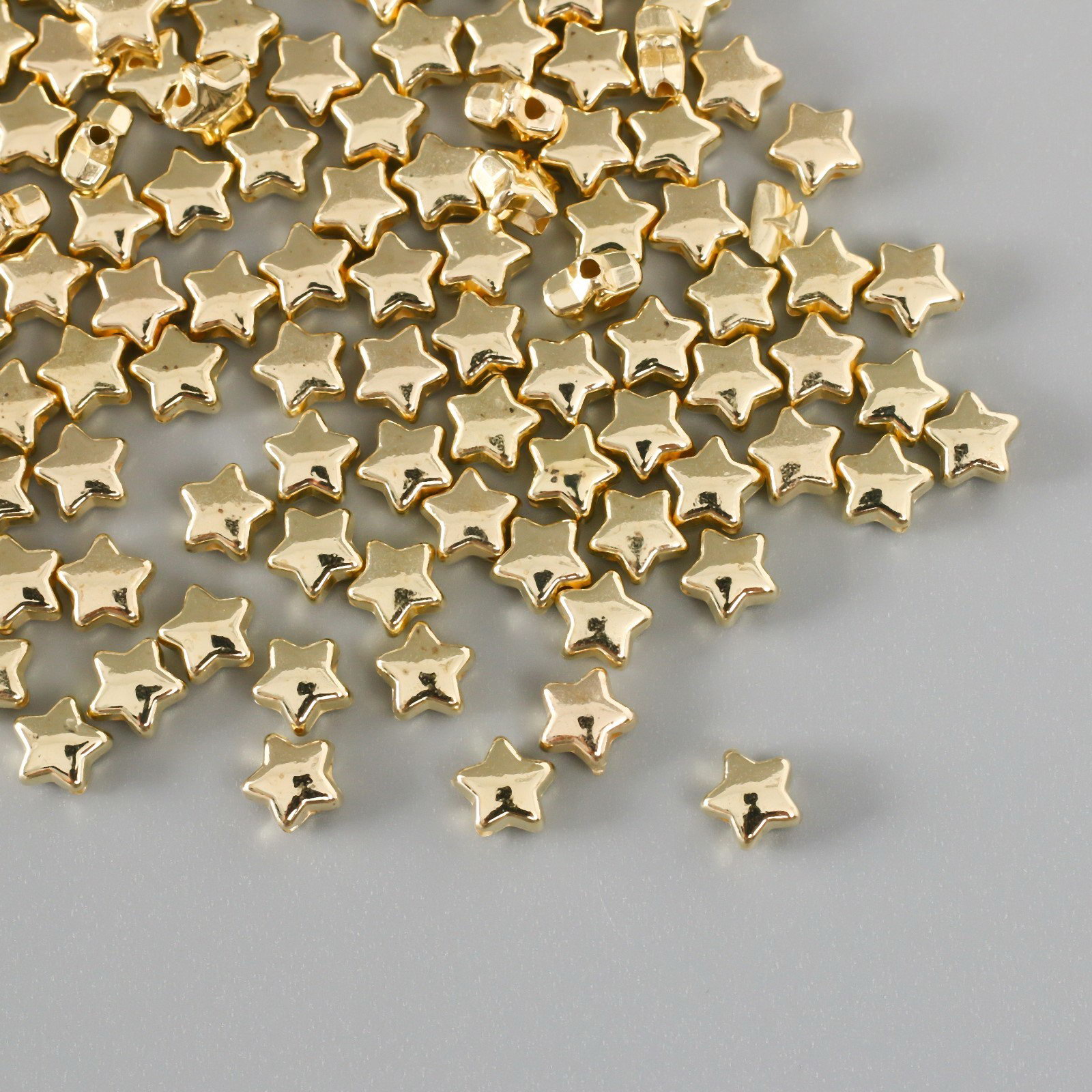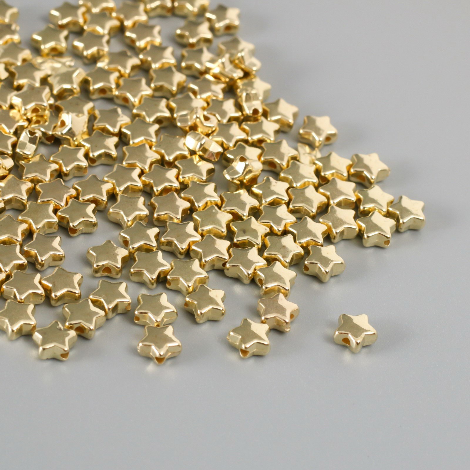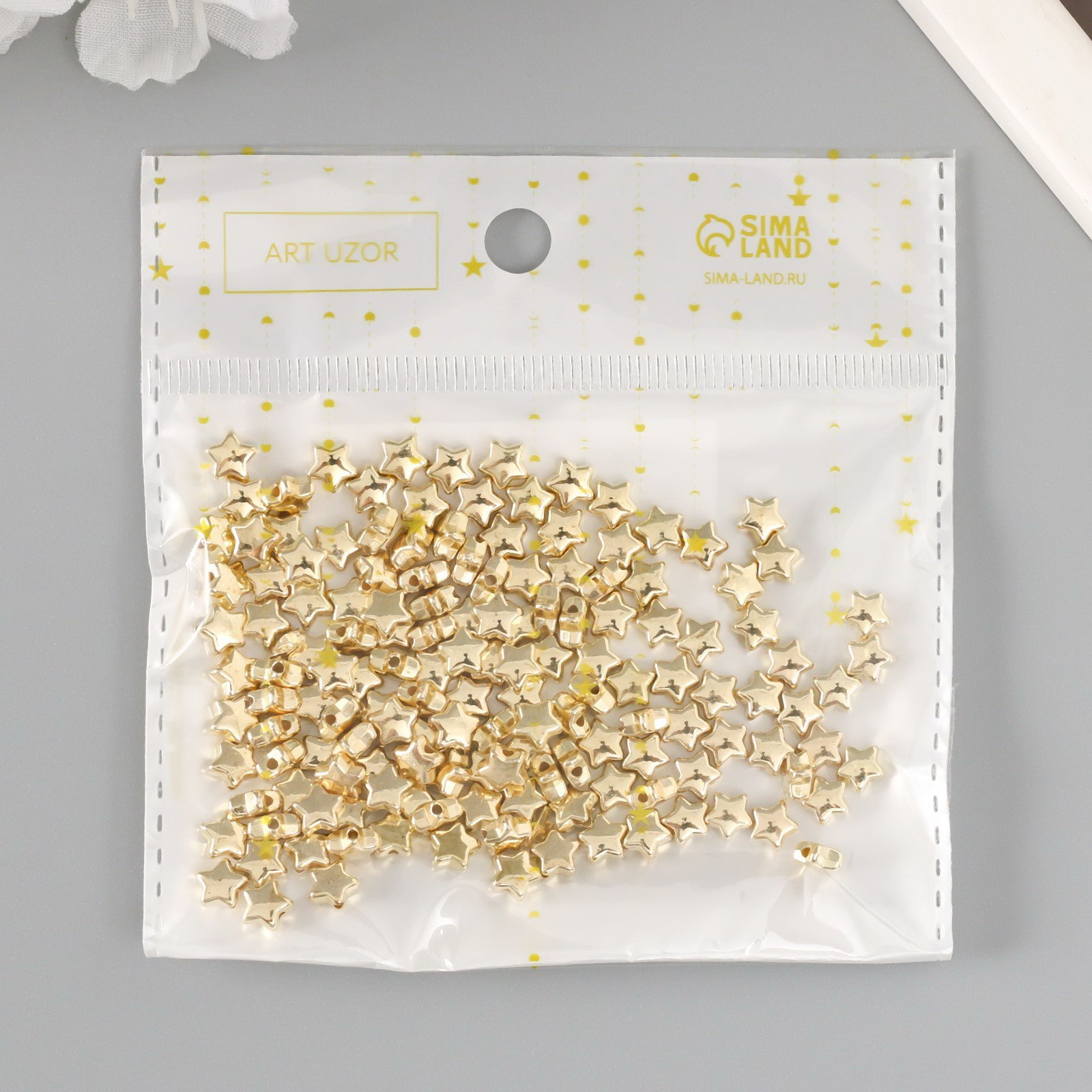Бусины для творчества пластик "Звёзды" набор 150 шт золото 0.6х0.6х0.4 см, 0.6x0.6x0.4 см., Арт Узор, Китай