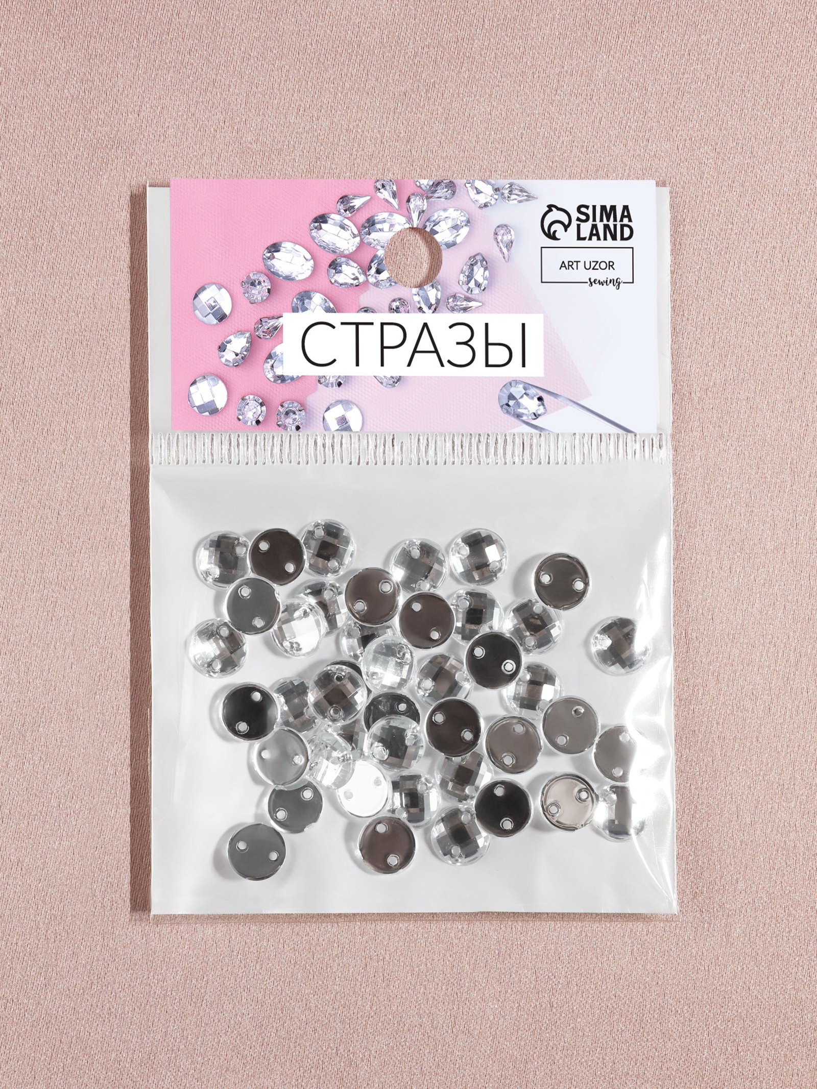 Стразы пришивные "Шатон", круглые, из органического стекла, d=8 мм, 50 шт., белые, 7x12.5x1 см., Арт Узор, Китай