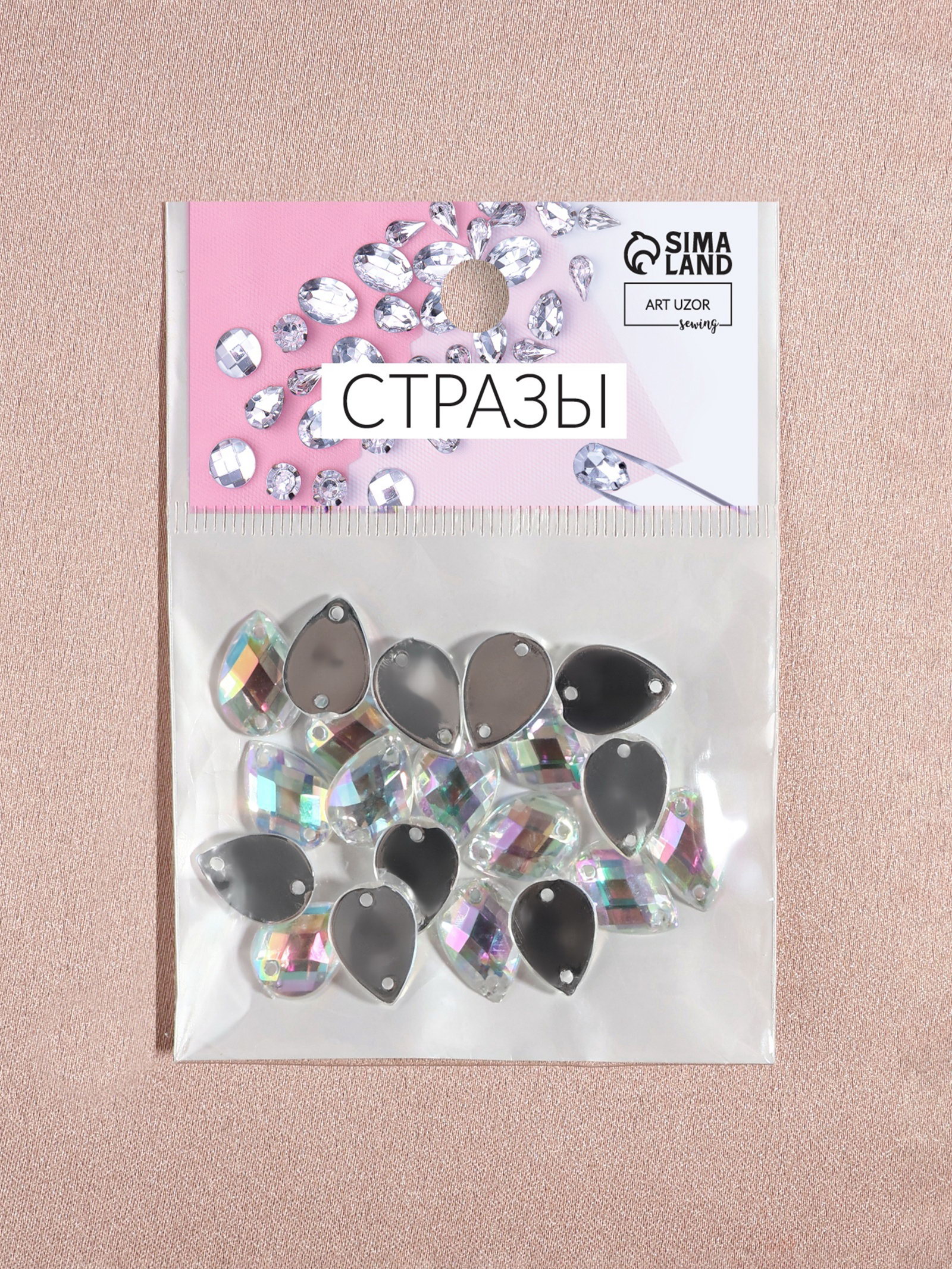 Стразы пришивные "Капля", из органического стекла, с голографией, 10x14 мм, 20 шт., 7x12.5x1 см., Арт Узор, Китай