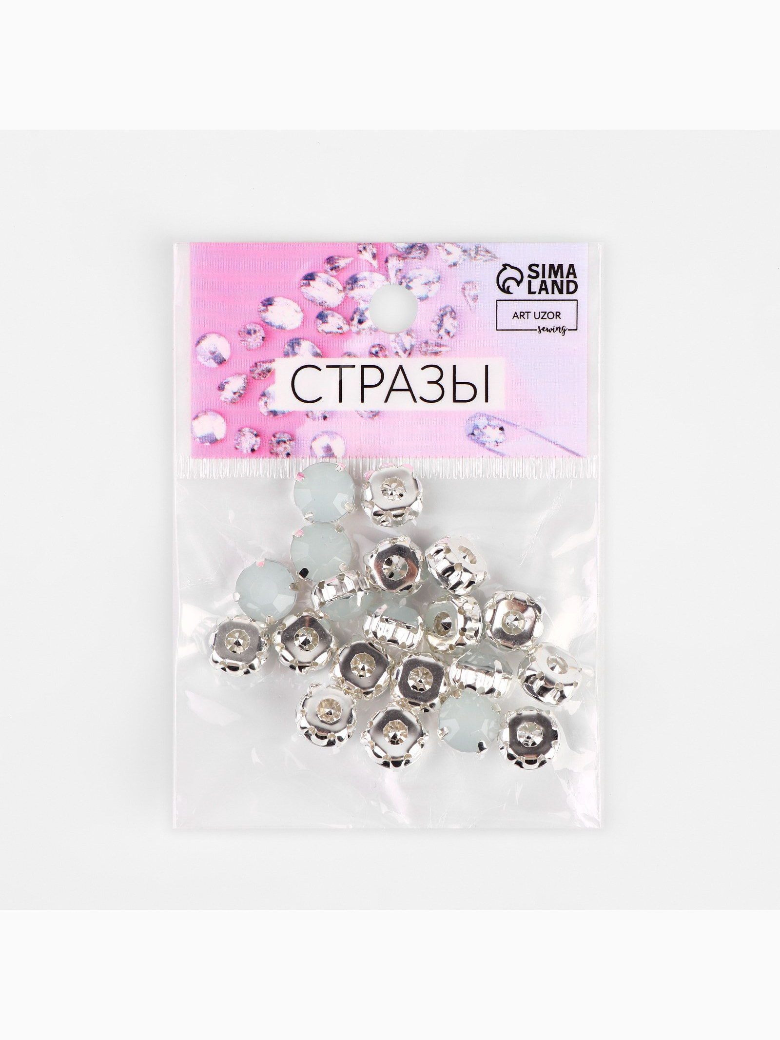 Стразы пришивные "Шатон", круглые, в цапах, d=10 мм, 20 шт., белые, 7x9.5x1.5 см., Арт Узор, Китай