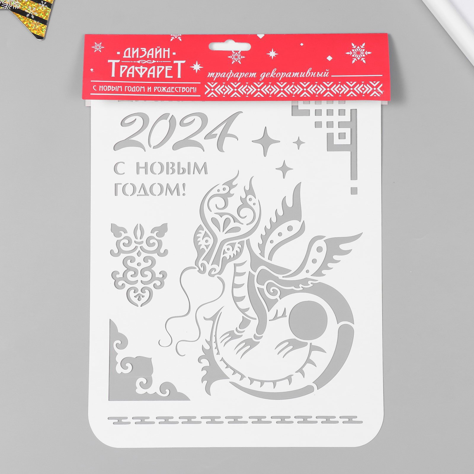 Пластиковый трафарет для творчества "Год дракона. С Новым Годом", шаблон, 22x31 см, Россия