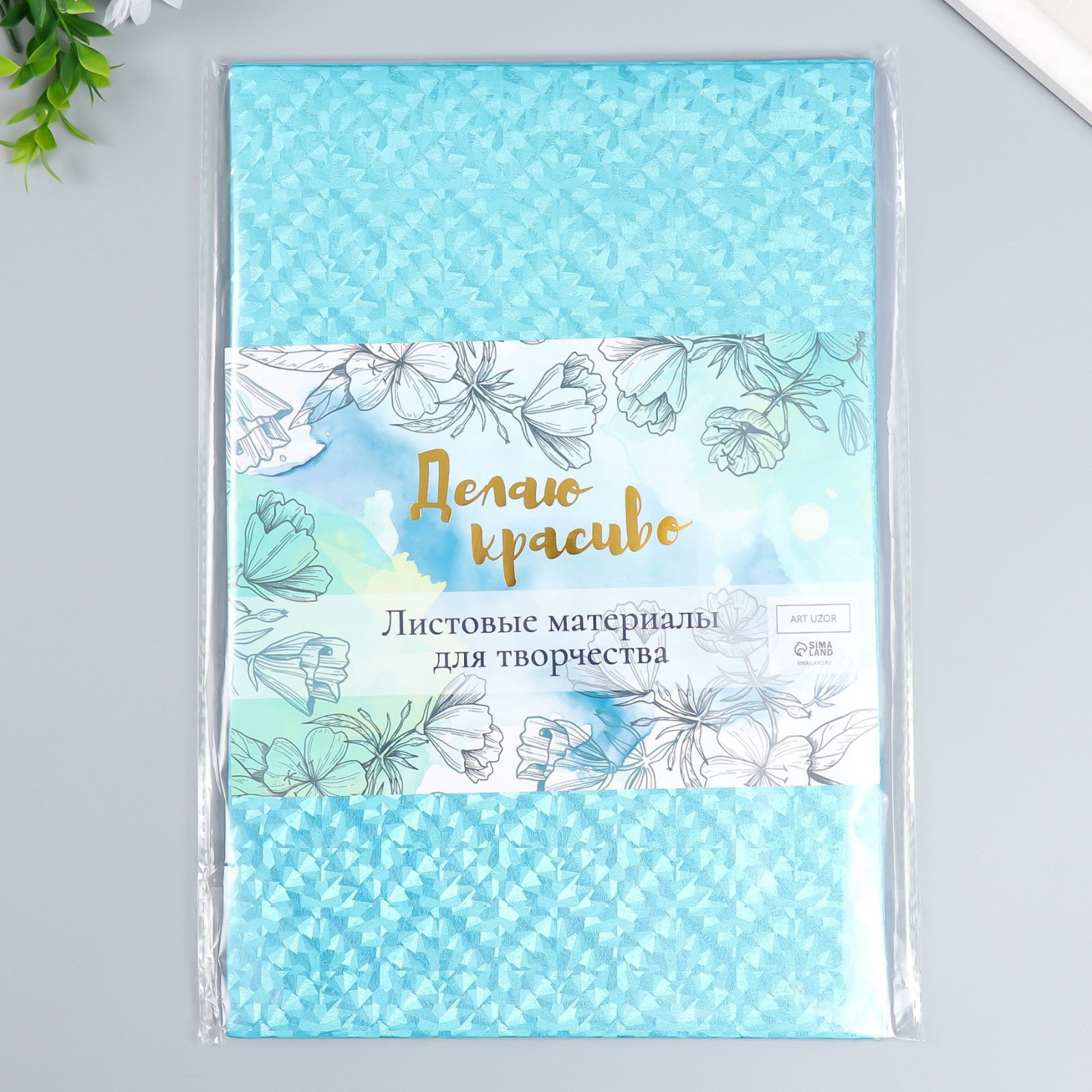 Фоамиран металлизированный "Вспышка голубая", 2 мм, формат А4, набор 5 листов, 20x30 см., Арт Узор, Китай