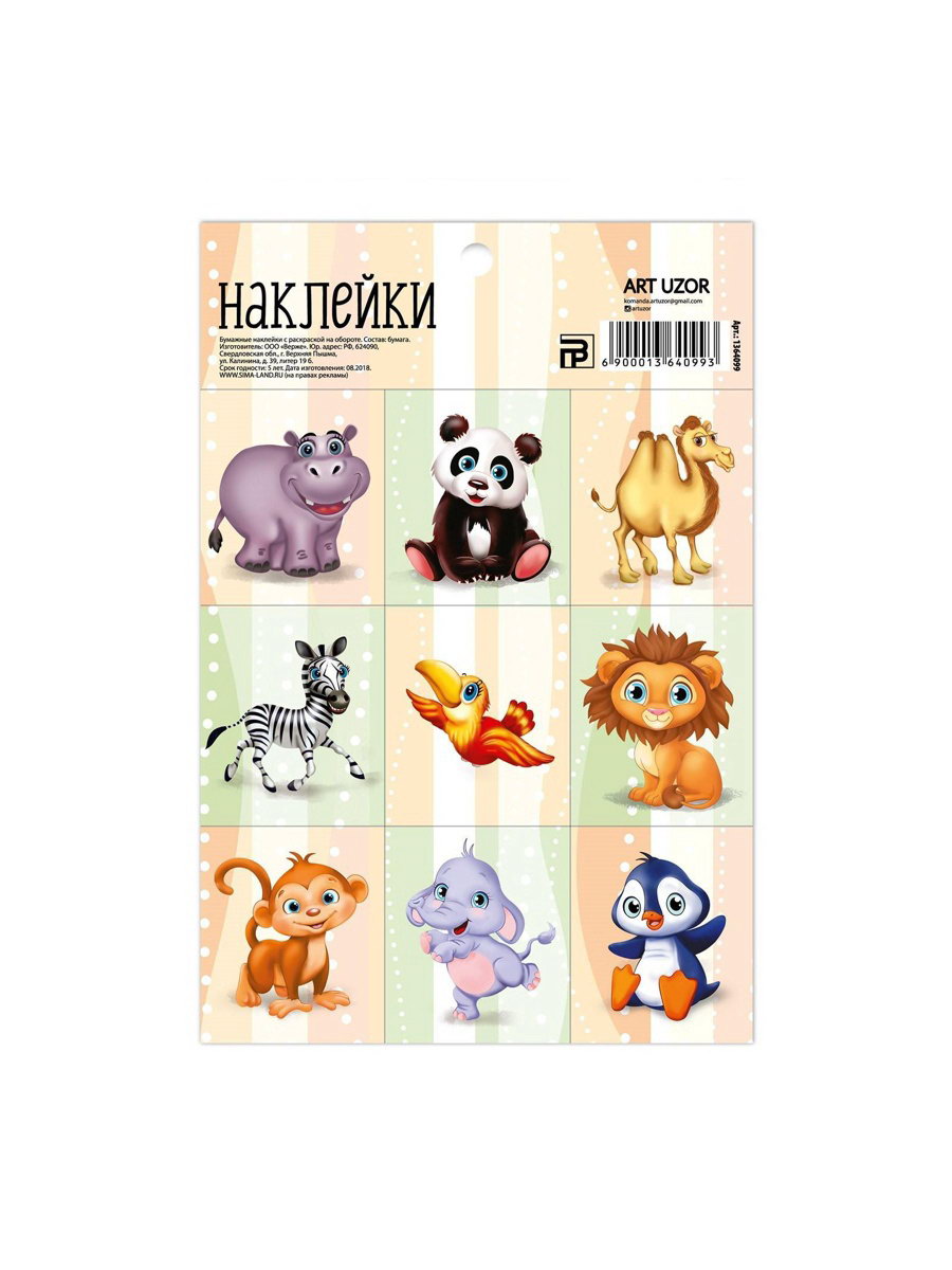 Наклейки детские бумажные "Любимые животные", c раскраской на обороте, 11 x 15.5 см, 0.1x11x15 см., Дарите Счастье, Китай