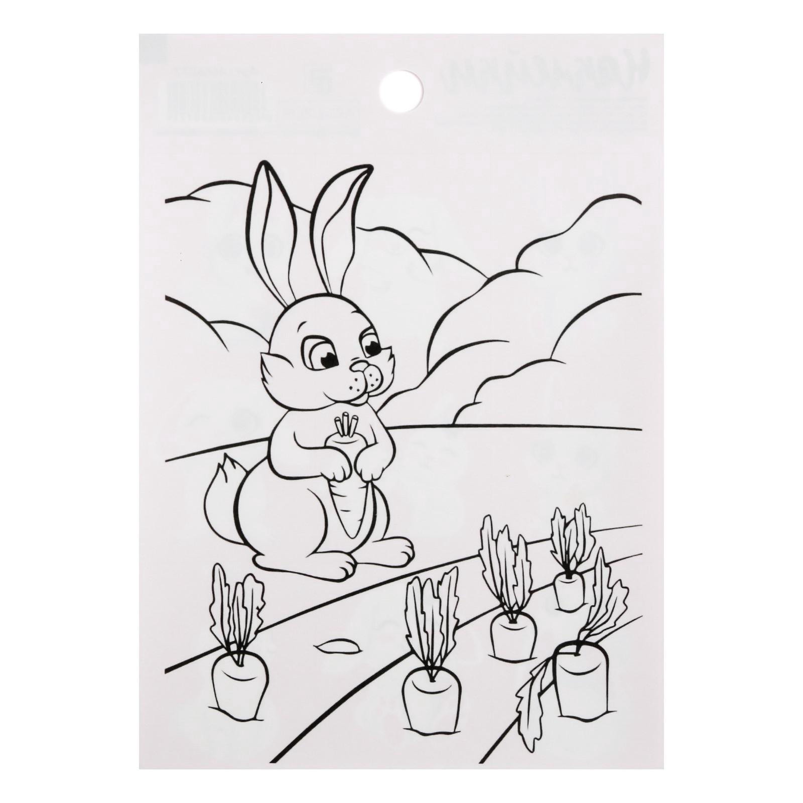 Наклейки детские бумажные "Зайки", c раскраской на обороте, 11 x 15.5 см, Дарите Счастье, Китай