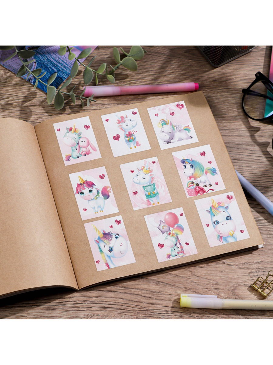 Наклейки детские бумажные "Единороги", c раскраской на обороте, 11 x 15.5 см, Дарите Счастье, Китай