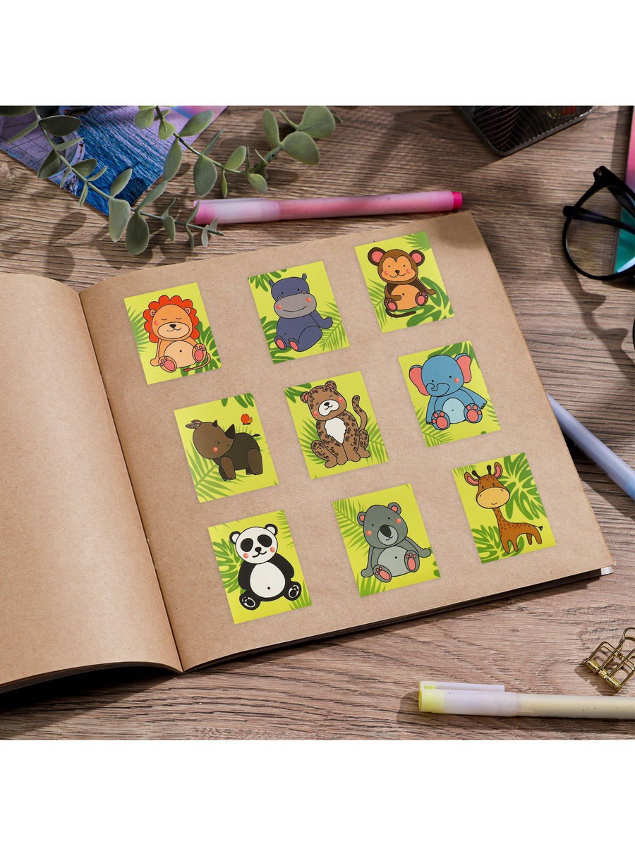Наклейки детские бумажные "Джунгли", c раскраской на обороте, 10x14 см, 15x11x0.1 см., Дарите Счастье, Китай