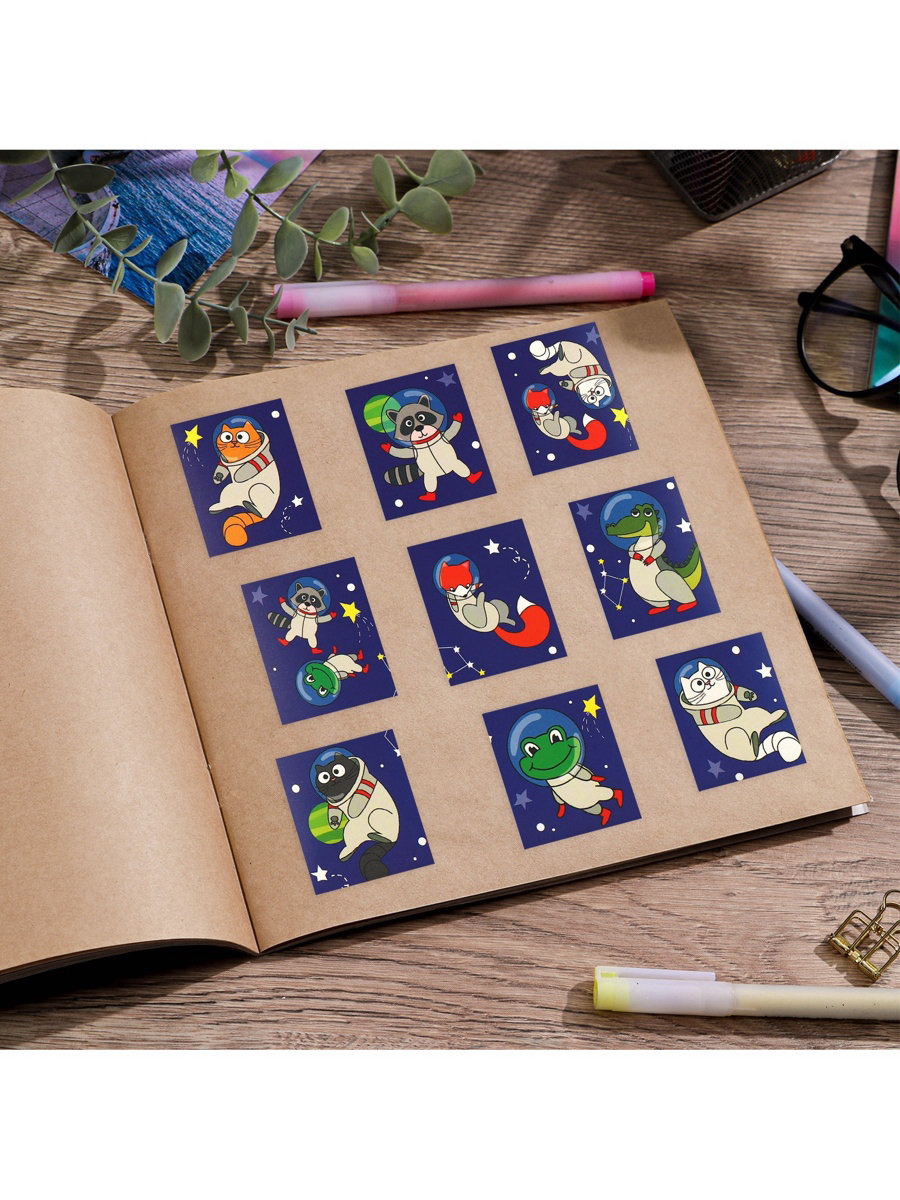 Наклейки детские бумажные "Космос: Космические животные", c раскраской на обороте, 10x14 см, 15x11x0.1 см., Дарите Счастье, Китай