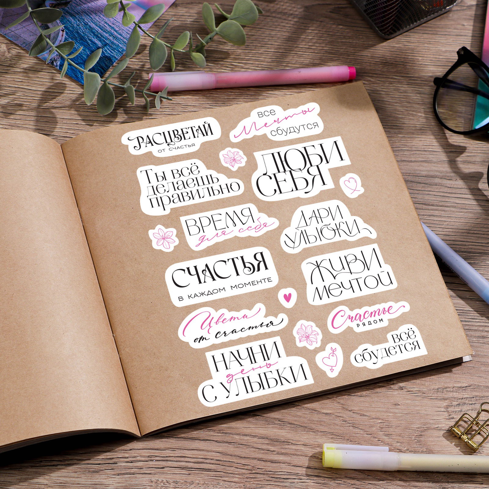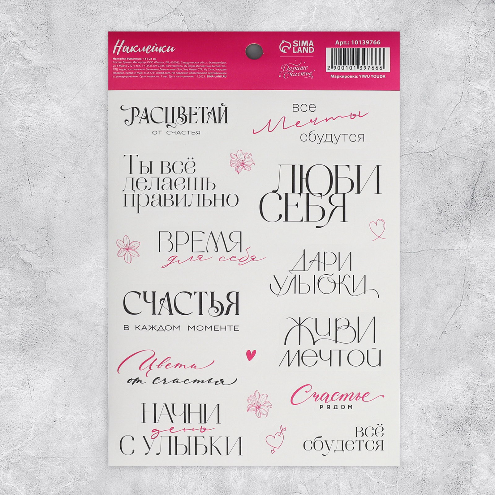 Наклейки для творчества бумажные "Люби себя", 14 x 21 см, 21x14x0.1 см., Дарите Счастье, Китай