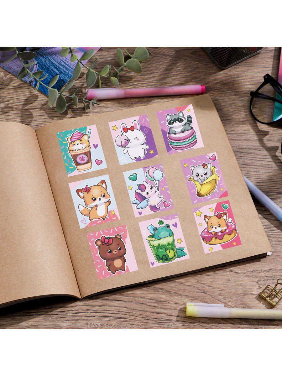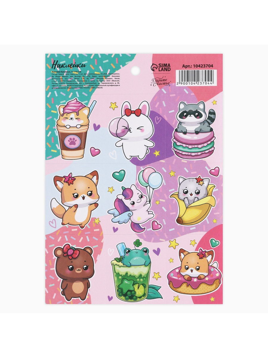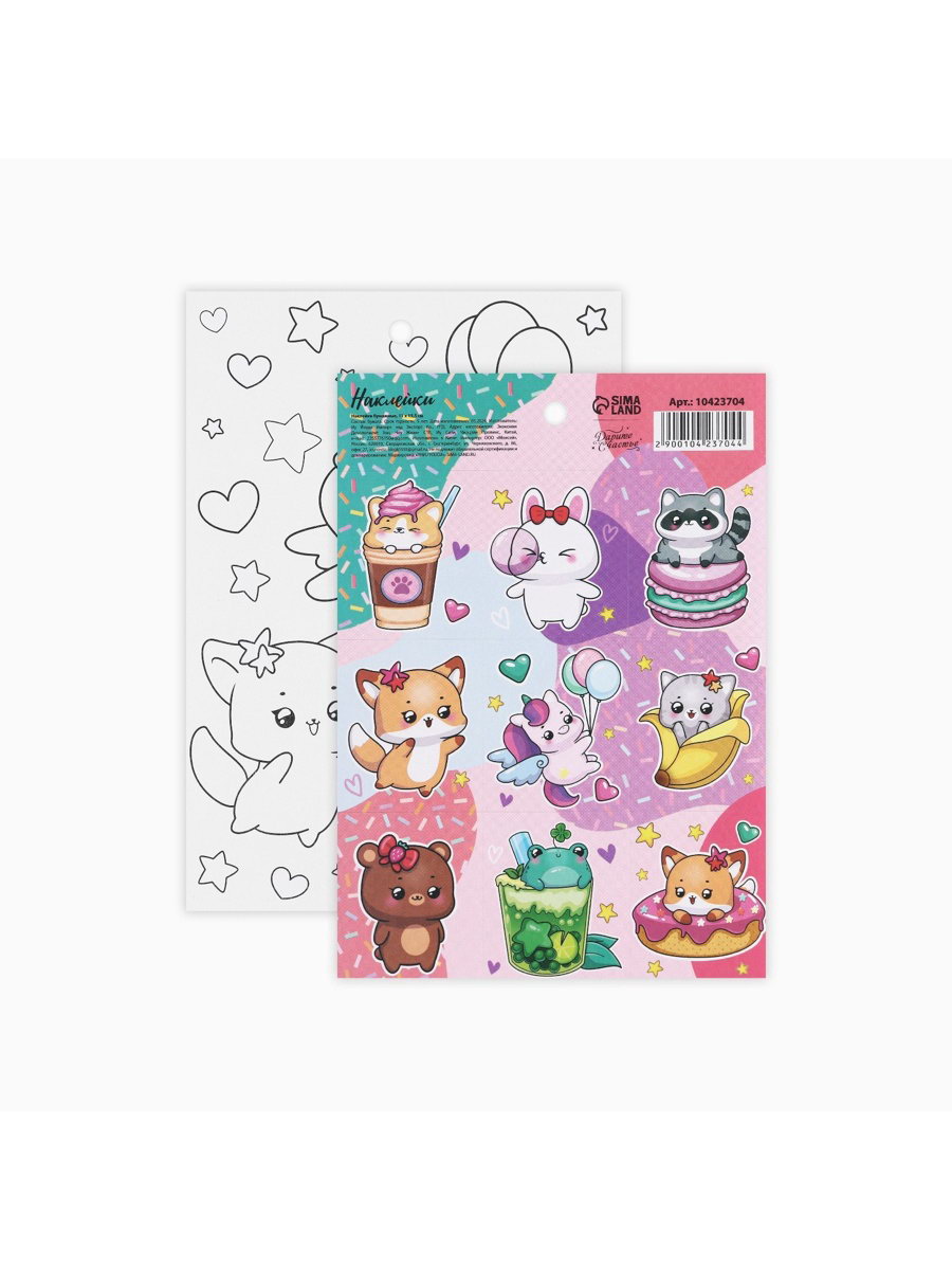 Наклейки детские бумажные "Милые персонажи", c раскраской, 10x14 см, 15x11x0.1 см., Дарите Счастье, Китай