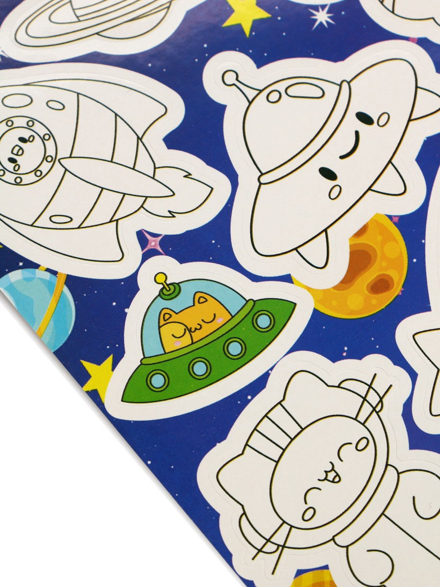 Наклейки детские "Космос", c раскраской, 11 x 16 см, 16x11x0.1 см., Дарите Счастье, Китай