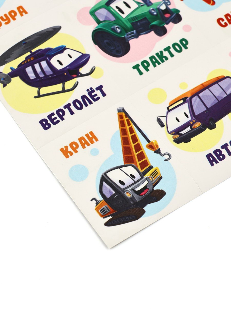 Наклейки детские "Транспорт", c раскраской на обороте, 10 x 14 см, 15x11x0.1 см., Дарите Счастье, Китай